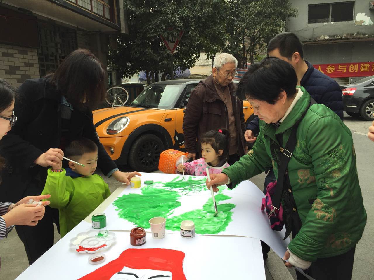 活动分为两个部分:绿色绘制和绿色交换。在绿色绘制中,志愿者们与社区居民一起绘制了三副海报。其中名为“经院牵手葵巷”的海报中,象征哔咔