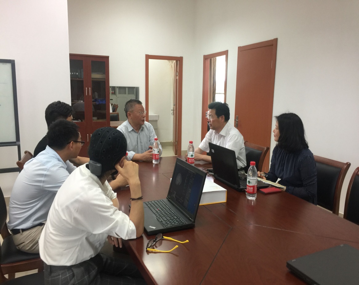 叶航教授向励如孟副校长详细介绍了研究团队近年来在经济学前沿研究领域----行为实验、神经实验与仿真实验方向的一系列研究成果。