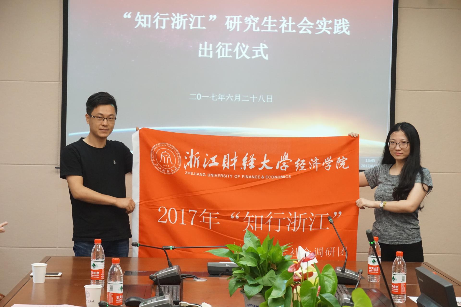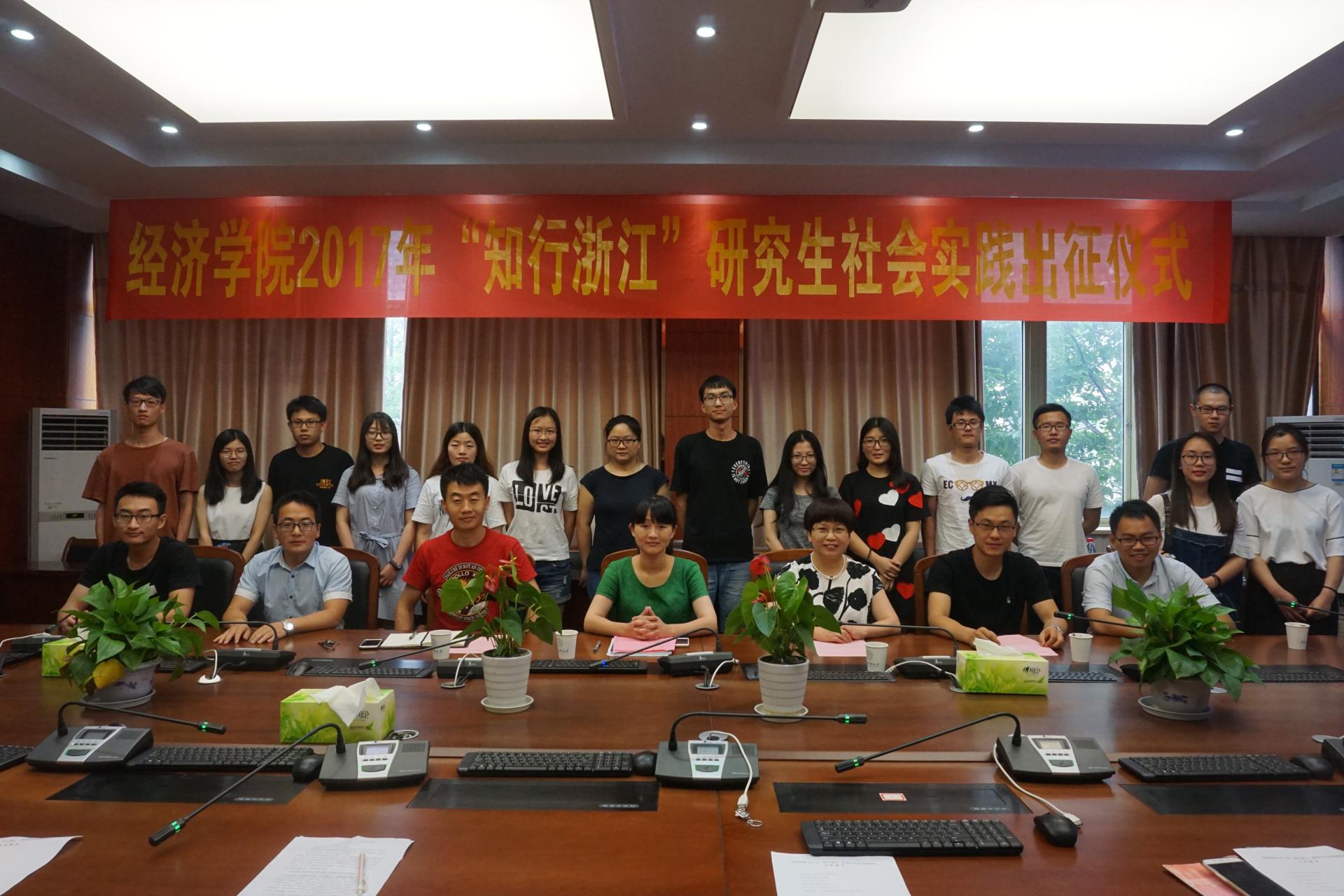 2017年第四届“知行浙江”研究生社会实践出征仪式在学院楼210报告厅举行。会议由党委副书记杨小恩主持,院长胡亦琴、副院长王正新、指导教师及全体实践团队成员参加了本次出征仪式。