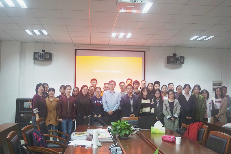 313教室举行。江苏明德玩具股份有限公司副总经理兼董事会秘书倪锋先生为17级国贸英华班本科新生和国际贸易与国际商务专业的研究生新生作了主题为“企业更喜欢专才还是通才”的讲座。