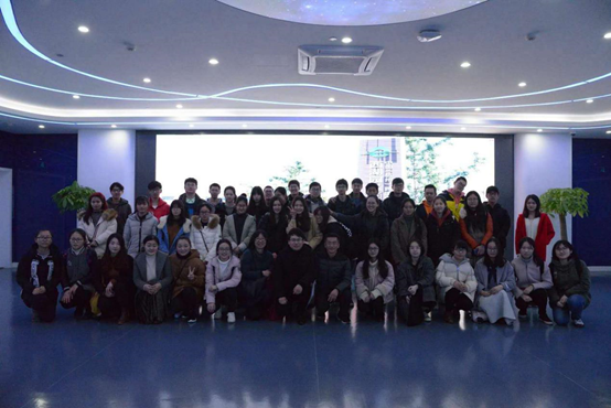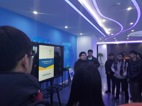 随后,参观团队又来到了二楼的展厅。郑先生运用产品展示、多媒体演示等多种手段综合讲解了孵化基地的园区运营管理、众创空间联合办公、创业针对性辅导、跨境电商商学院、运营辅导五大核心板块,并详细介绍了基地为跨境电商所提供的一站式服务。通过举例说明了其是国内跨境电商服务行业的先行与推动者。在参观过程中,郑先生还细心地解答了师生们关于跨境电商的区别、盈利模式、合作方式等方面的疑问,进一步深化了大家对于跨境电商的理解,激发了同学们的学习兴趣。