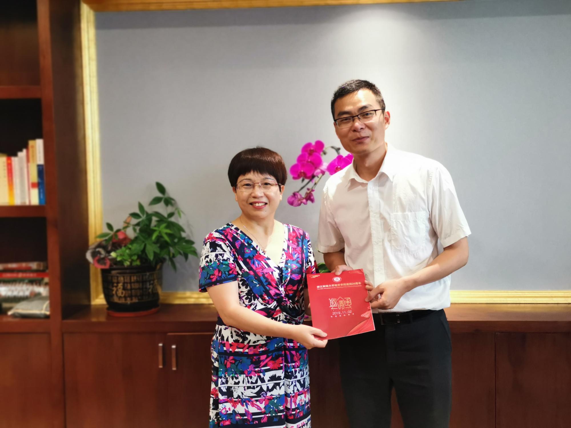胡亦琴院长向孙科杰校友了介绍学校和学院的发展和变化,今年正值学校45周年校庆和学院20周年院庆,向他发出返校参加校庆、院庆活动的邀请,也希望他能常回学院看看,为在校生分享自己的经历与感悟。孙科杰校友介绍了目前宁波校友分会的情况,表达了对母院的思念和感激之情,表示会一如既往的支持学院发展,为学院的发展贡献自己的力量。