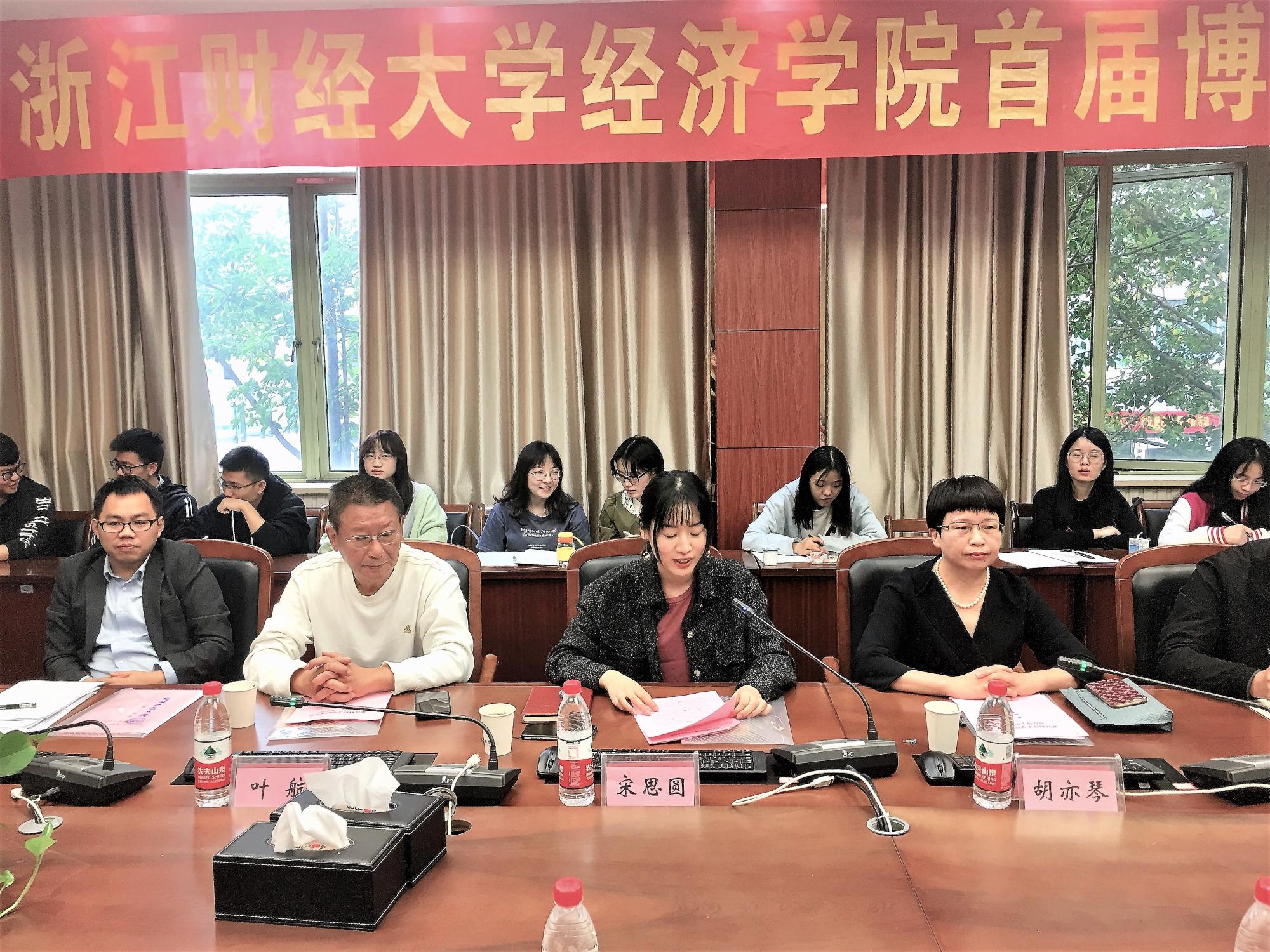 首届博士生论坛在学院楼210会议室举行,研究生院宋思圆老师、经济行为与决策研究中心首席专家叶航教授、哔咔