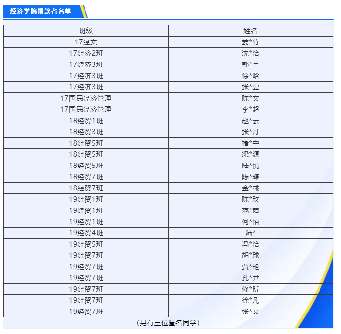 校友也积极响应学院校友会的倡议,发挥了作为一名“浙财经济人”的担当。他们通过各种渠道,用捐赠物资、志愿服务等方式,为社会努力奉献着。林偌嫣校友利用自己所学专业,争当志愿者,专门与巴西、美国等侨胞对接,识别口罩基础信息、翻译文件和海关绿色通道等多重手续申报,将上万只口罩等急需医疗物资顺利运回温州医院;陈牡娟校友为了保障全乡5000余人的生活必需品,挺身而出,每一天她都会根据村民列出的采购清单到县城超市进行采购,然后将所购的生活必需品分发到相应的村民家中。截止目前,陈牡娟校友为村民代购物品的金额已超过15000元。目前学院有30多名校友参与到此次疫情防控工作中。