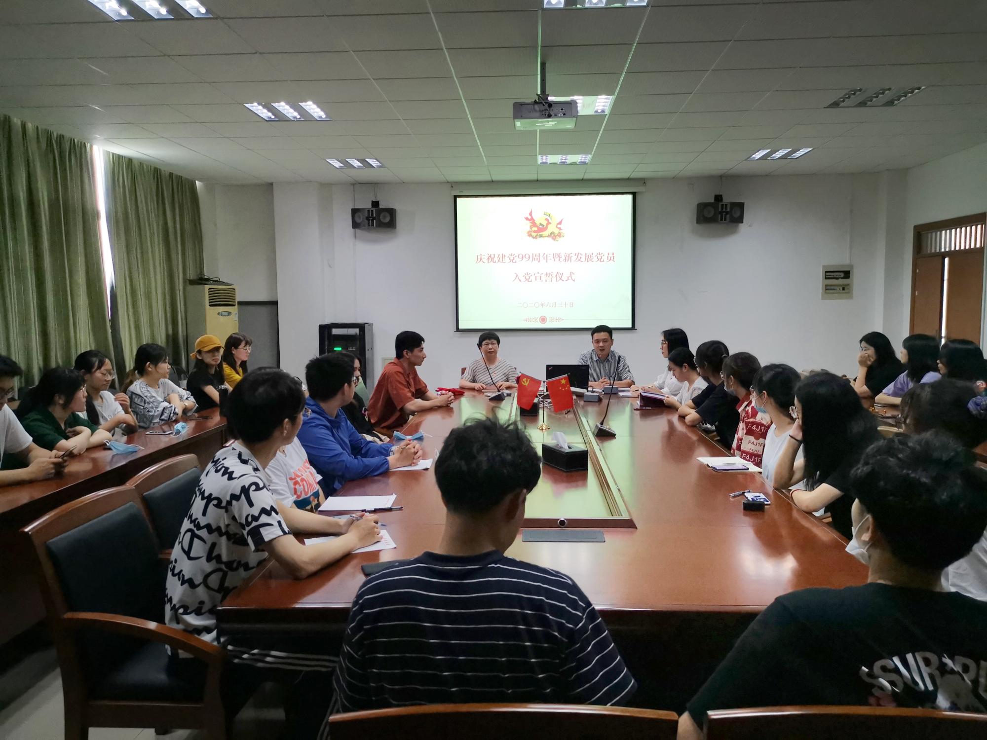 举办“庆祝建党99周年暨新发展党员入党宣誓仪式”。会上,胡亦琴书记深情寄语新发展党员。她谈到我们要永远保持建党时中国共产党人的奋斗精神,永远保持赤子之心,不能忘记为什么出发。她还对与会党员提出两个要求:一是要做一名合格党员,作表率、作示范,志存高远;二是要做一名优秀党员,讲大局、讲奉献、心怀家国。学院党委书记胡亦琴、党委副书记崔泰铭和各党支部书记还为新发展党员佩戴党徽,赠送政治生日贺卡,并为新发展党员举行入党宣誓仪式。