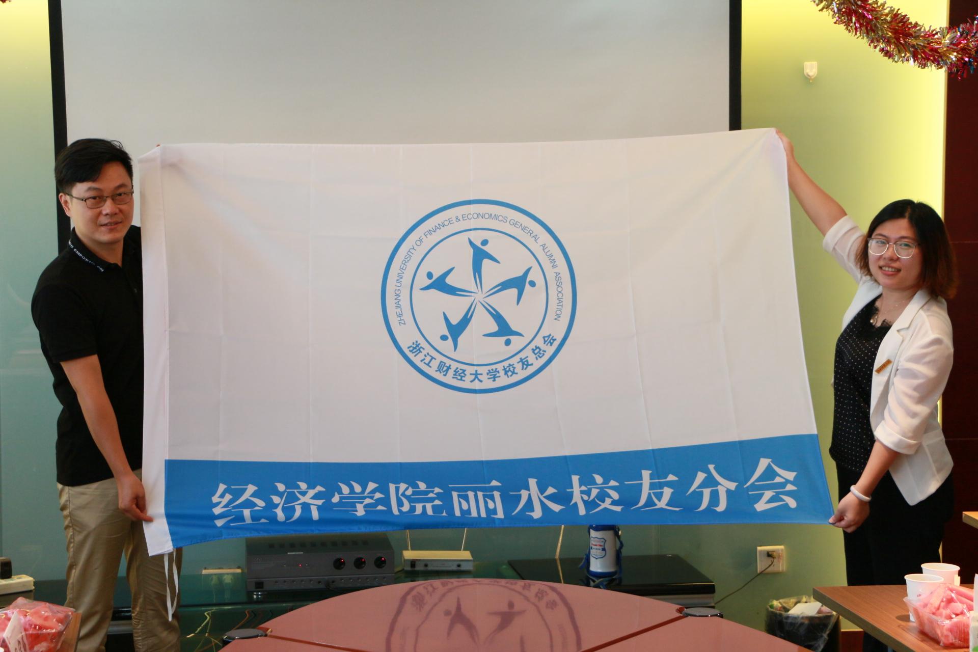 学院院长王正新为丽水校友分会授旗