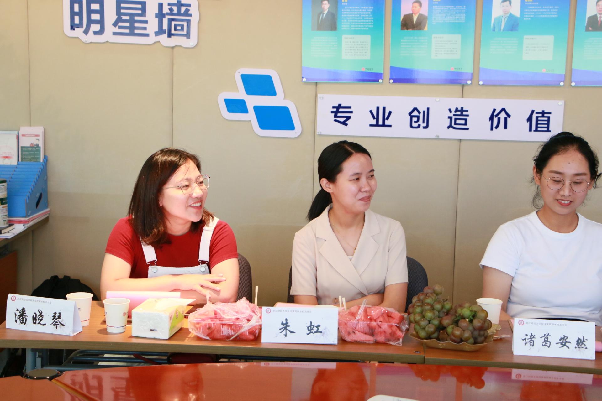 新一届丽水校友分会会长张珊珊发言,她表达了对母校和学院发展的祝贺,和团结力量办好哔咔