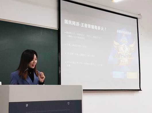 高宁老师首先从游戏行业发展史的萌芽期、发展期和爆发期等方面与同学们讨论了有关游戏行业的相关内容。接着,高宁老师详细地介绍了一款游戏之所以火爆的原因,即天时—趋势、地利—产品、人和—腾讯,并且分析了每个原因包含的主要内容。最后高宁老师说明了游戏的特征和游戏更宏大的意义,并且认为游戏不仅仅给我们带来了愉悦感,更能推动着我们的前进。