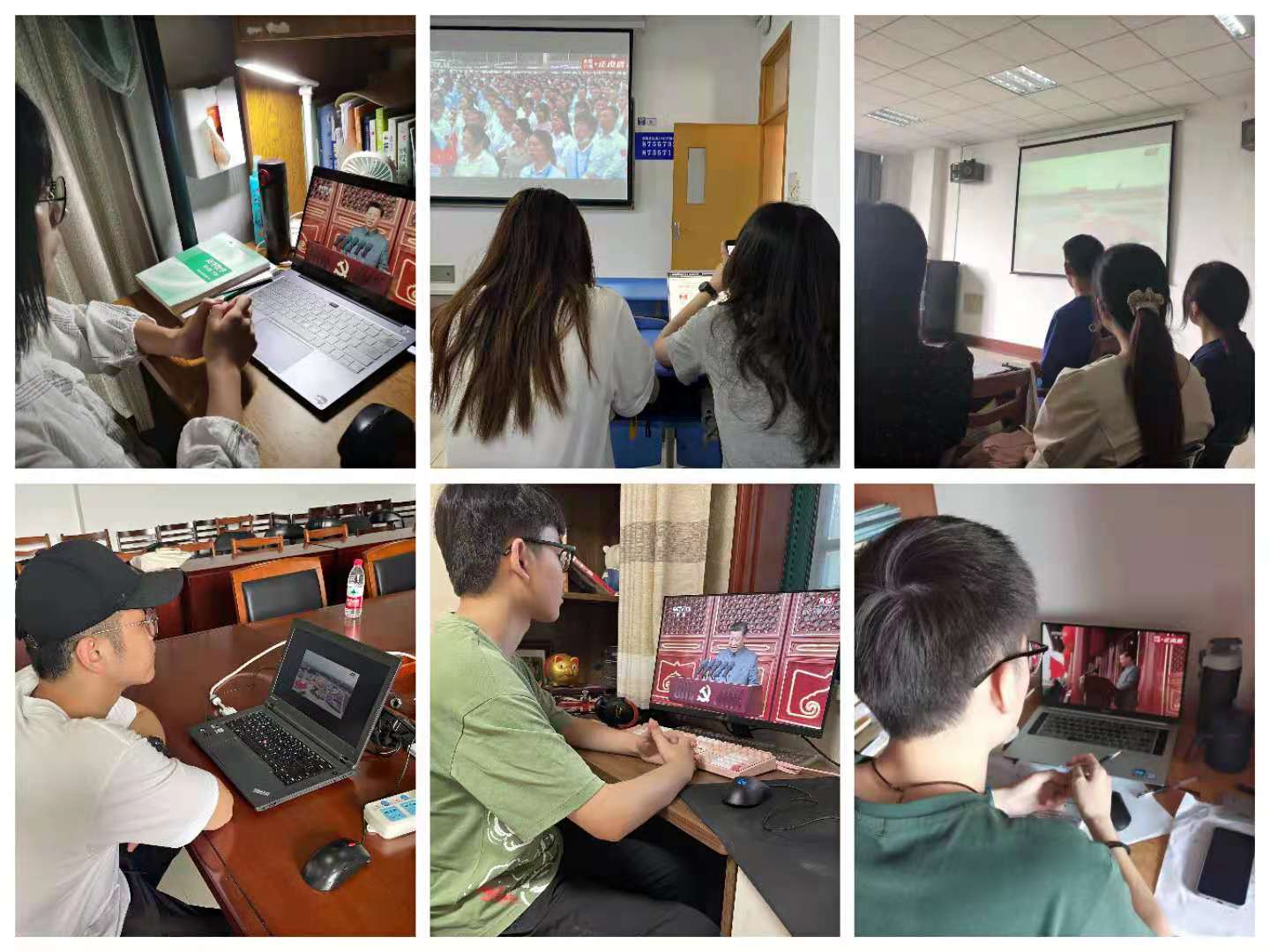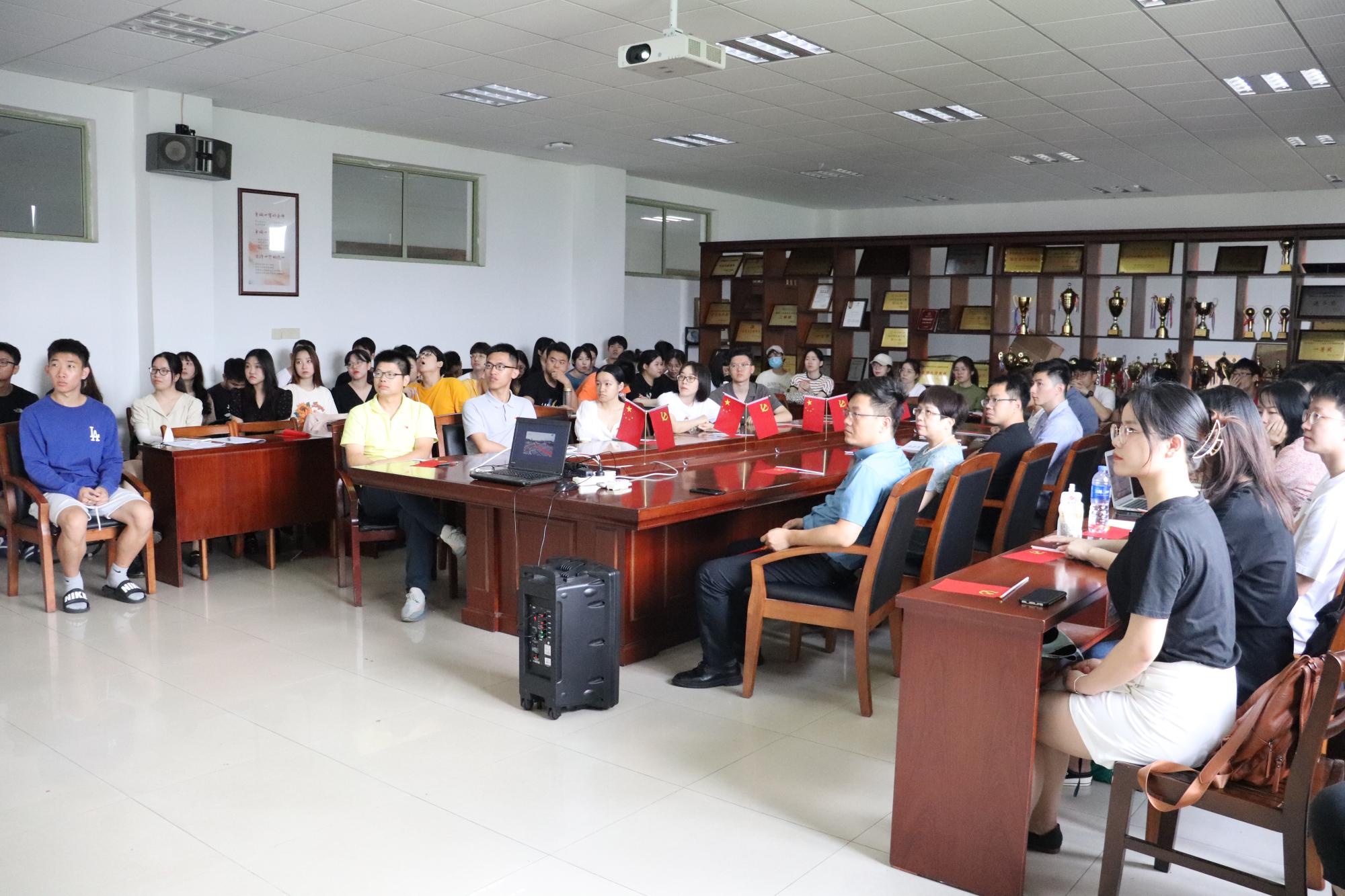 学院领导班子、各党支部领导班子、师生党员代表在学院楼313会议室集中收看了电视直播。