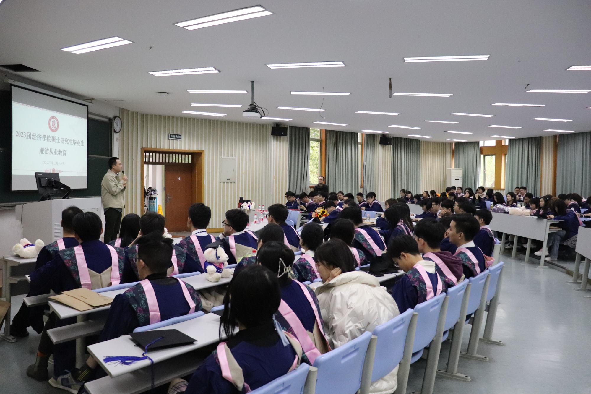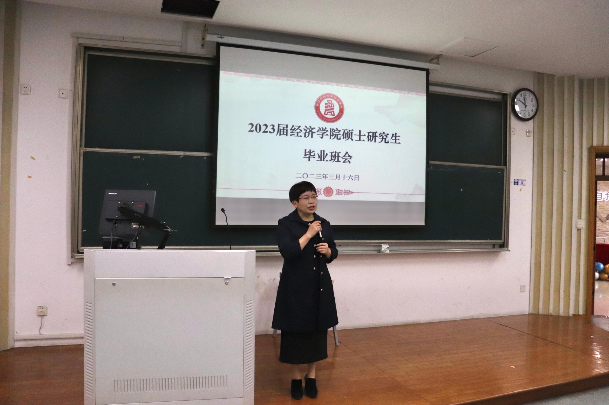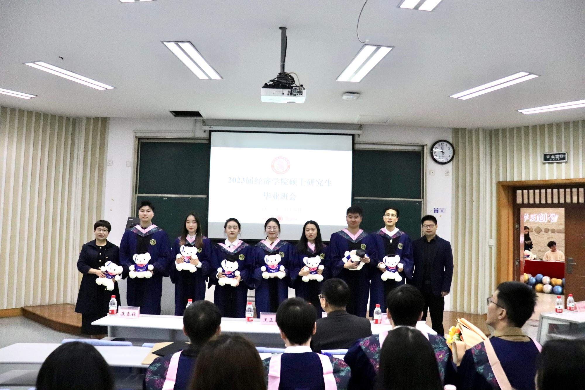2023届硕士研究生毕业欢送会在学院楼111教室召开。院长王正新、党委书记胡亦琴、副院长罗俊、邓晓军、辅导员俞一献及全体2023届毕业生参加。会议由学院党委副书记崔泰铭主持。