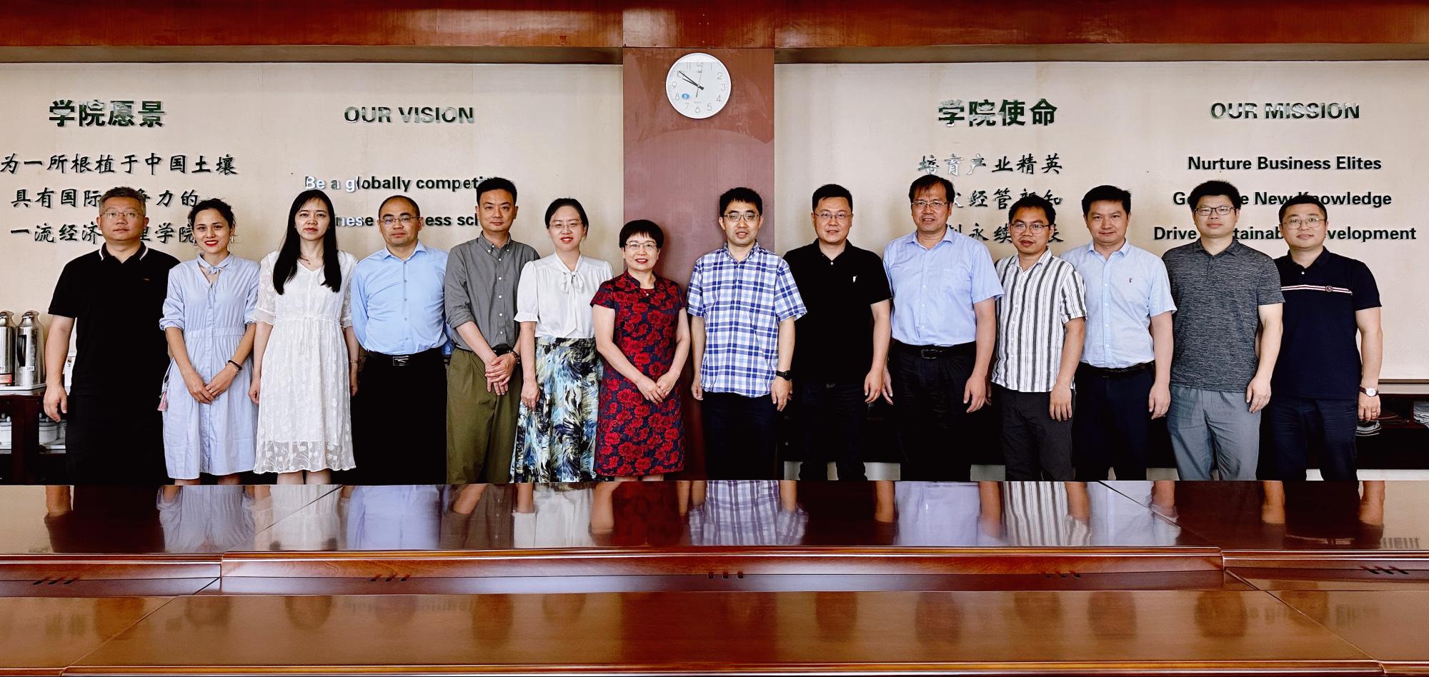 双方分别就各自学院的历史沿革与发展现状作了简要介绍;重点就师资队伍建设、数字经济专业与拔尖创新人才培养、理论经济学科建设与改革、科学研究与社会服务及党建+等方面进行了深入交流;就学院未来发展和长远规划进行了深入探讨,双方均表示将加强院际间的合作与交流,取长补短,增进友谊,共促发展。