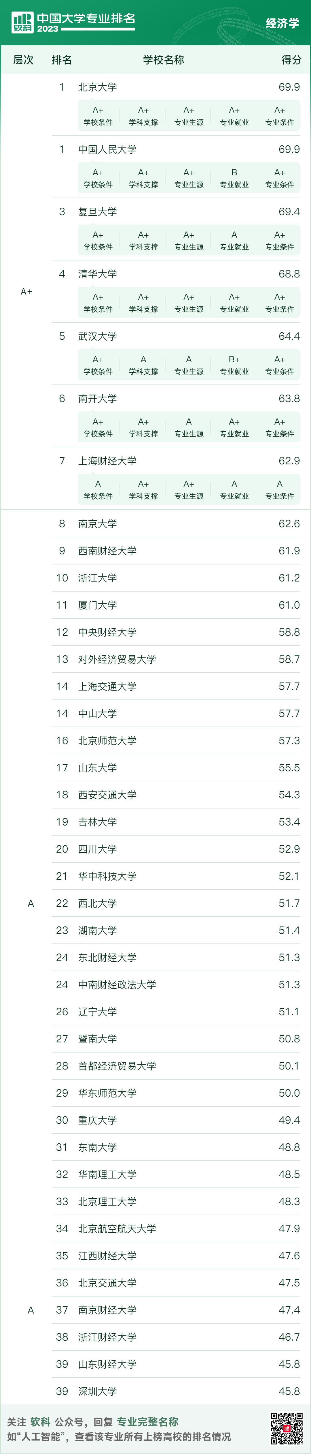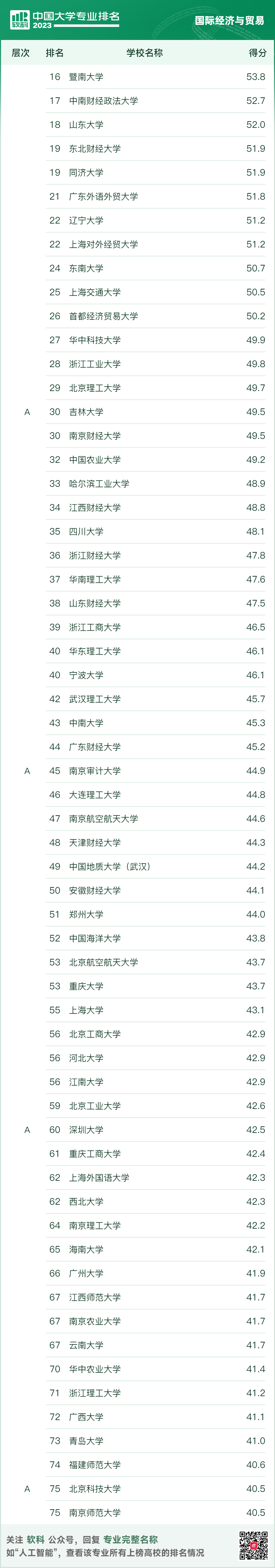 数字经济、国际经济与贸易、经济学三个本科专业同时上榜软科A类专业,经济学专业在全国排名第38,在浙江排名第2;国际经济与贸易专业在全国排名第36,在浙江排名第3;数字经济在全国排名第9,在浙江排名第1。