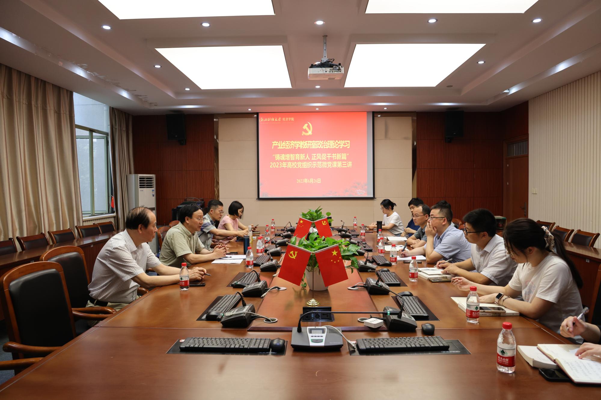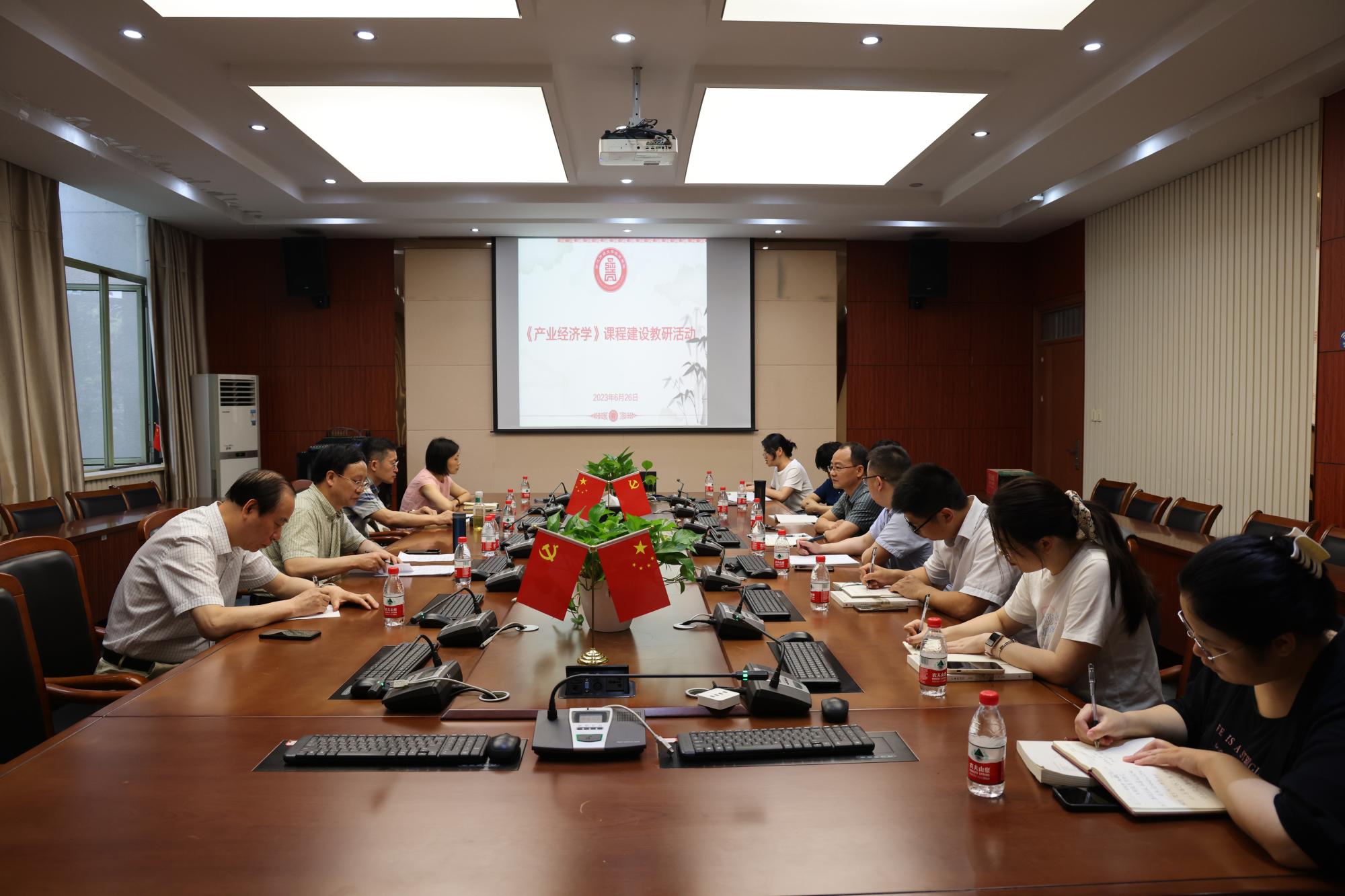 在210会议室召开《产业经济学》课程建设研讨会。本次会议由经济系主任、产业经济学教研室主任邱风教授主持,中国政府管制研究院院长王俊豪教授、科研处处长金通教授、国际学院院长柴志贤教授、数字经济系主任唐要家教授以及产业经济学教研室的其他老师参加了会议。此外,本次会议还特别邀请了学院副院长邓晓军教授和教学办公室主任高晓菁老师参加了会议。