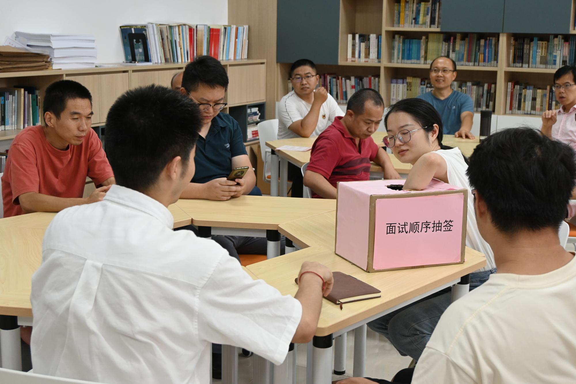 为确保面试工作的公平、公正与公开性,本次面试采用双盲抽签的方式进行,面试考官与秘书的考场号、考生的考场号与顺序号均是随机抽签确定,考生的面试试题也是从试题库中随机抽取。同时,对考生面试进行全程录像,也要求考官现场独立评分。
