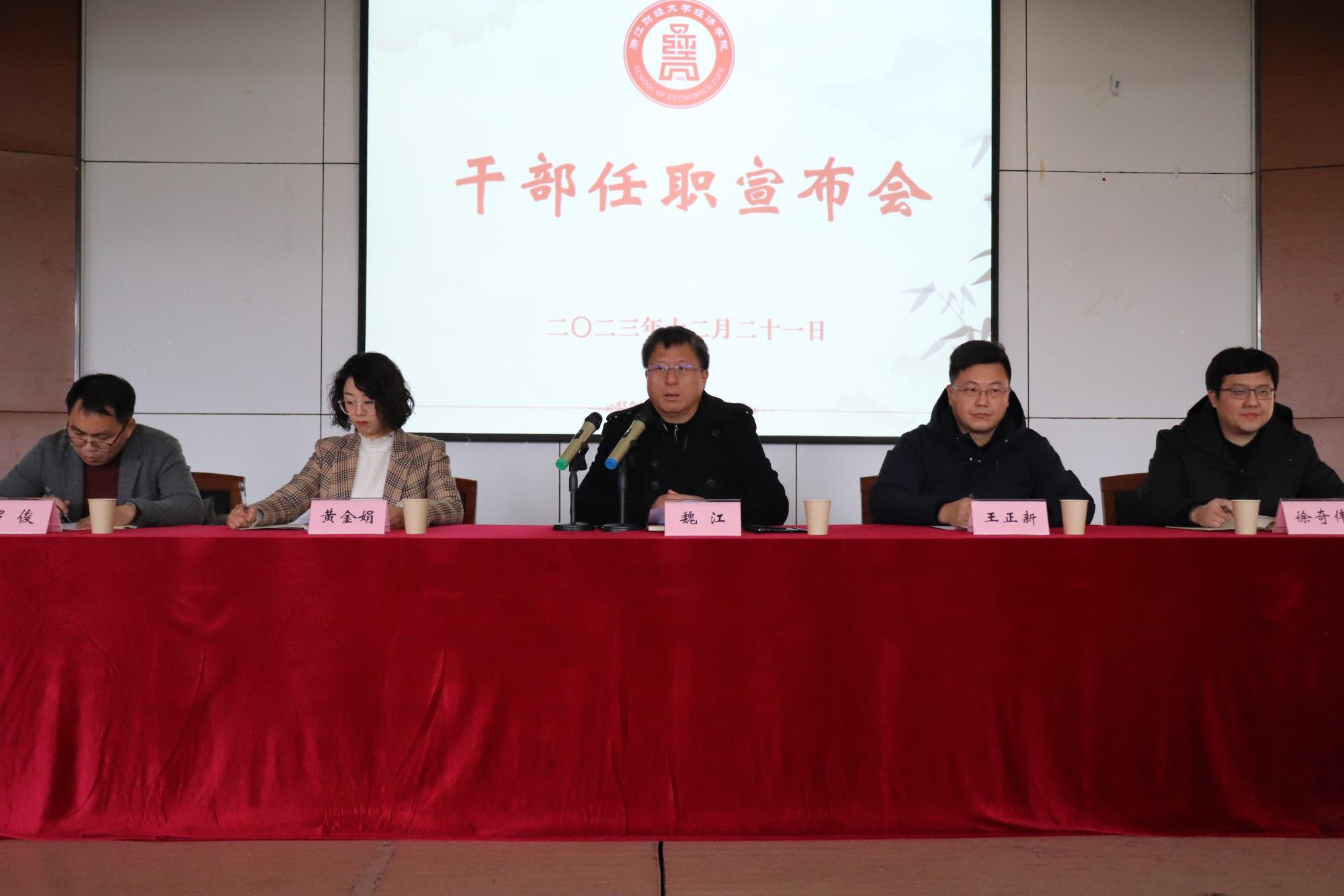黄金娟代表学校党政宣布任命决定,任命徐奇伟同志为哔咔
