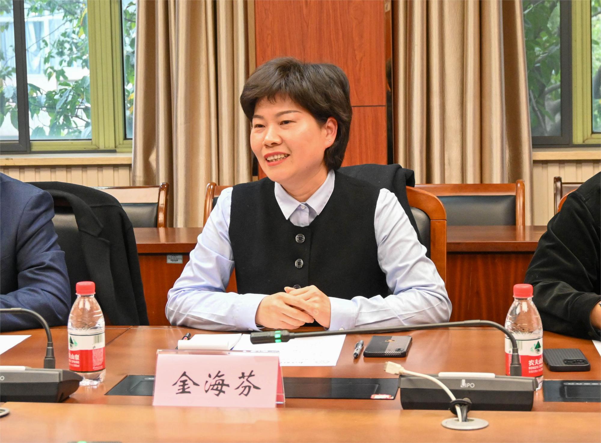 金海芬女士介绍了公司的发展经历以及捐赠的初衷。她表示,希望通过设立教育基金,深化校企合作,也期待在合适的时机为学院的建设和学生的成长提供力所能及的支持,为学生更好地发展提供助力,祝愿哔咔