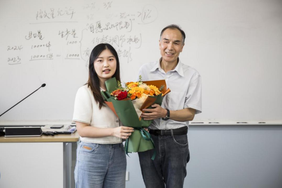 张老师的毕业生也特意赶回学校再上一次张老师的课程,感谢张老师对她们学业等各方面的指导和教诲,并衷心祝愿张老师身体健安康,退休愉快。