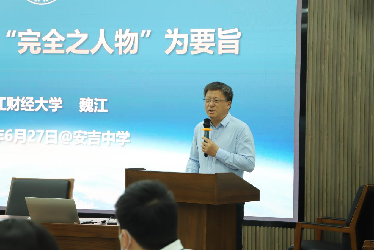 魏江校长以《教育应以培养“完全的人物”为要旨》为题,为高三学生及家长作专题讲座。他从“什么是‘完全的人物’——他心目中哔咔