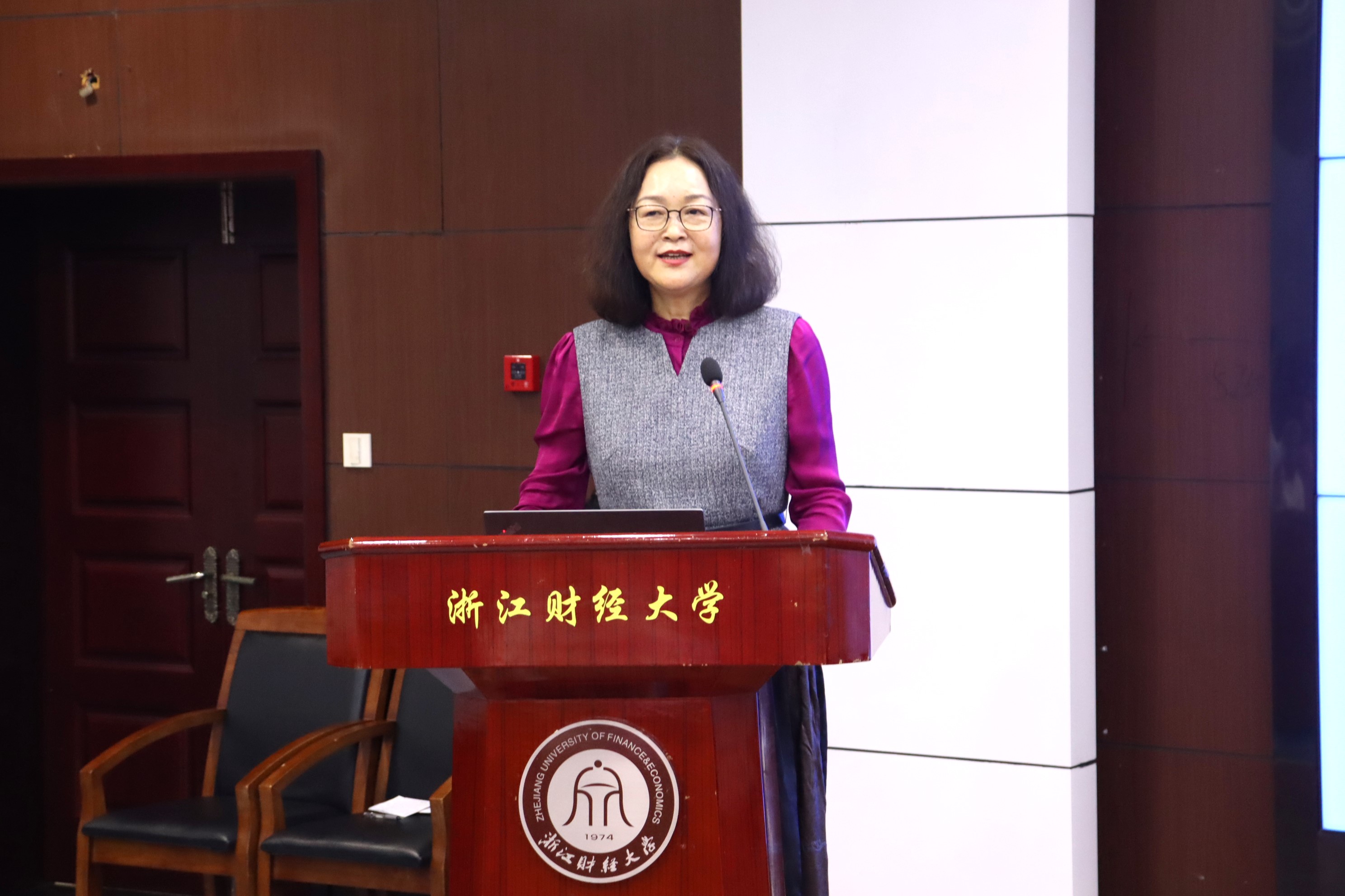郑亚莉与学生分享了自己的成长经历与深刻感想,引用中央电视台《经典咏流传》节目中的一首诗歌《苔》,鼓励同学们坚定理想信念,正如诗中所云 “苔花如米小,也学牡丹开”,通过“数贸新声”绽放属于自己的绚烂之花,要始终相信自己能够成长成才。她通过“团结就是力量”“爱拼才会赢”“明天会更好”三首歌给予期望,希望学生胸怀家国天下,拓展国际视野,增强合作交流,发挥哔咔