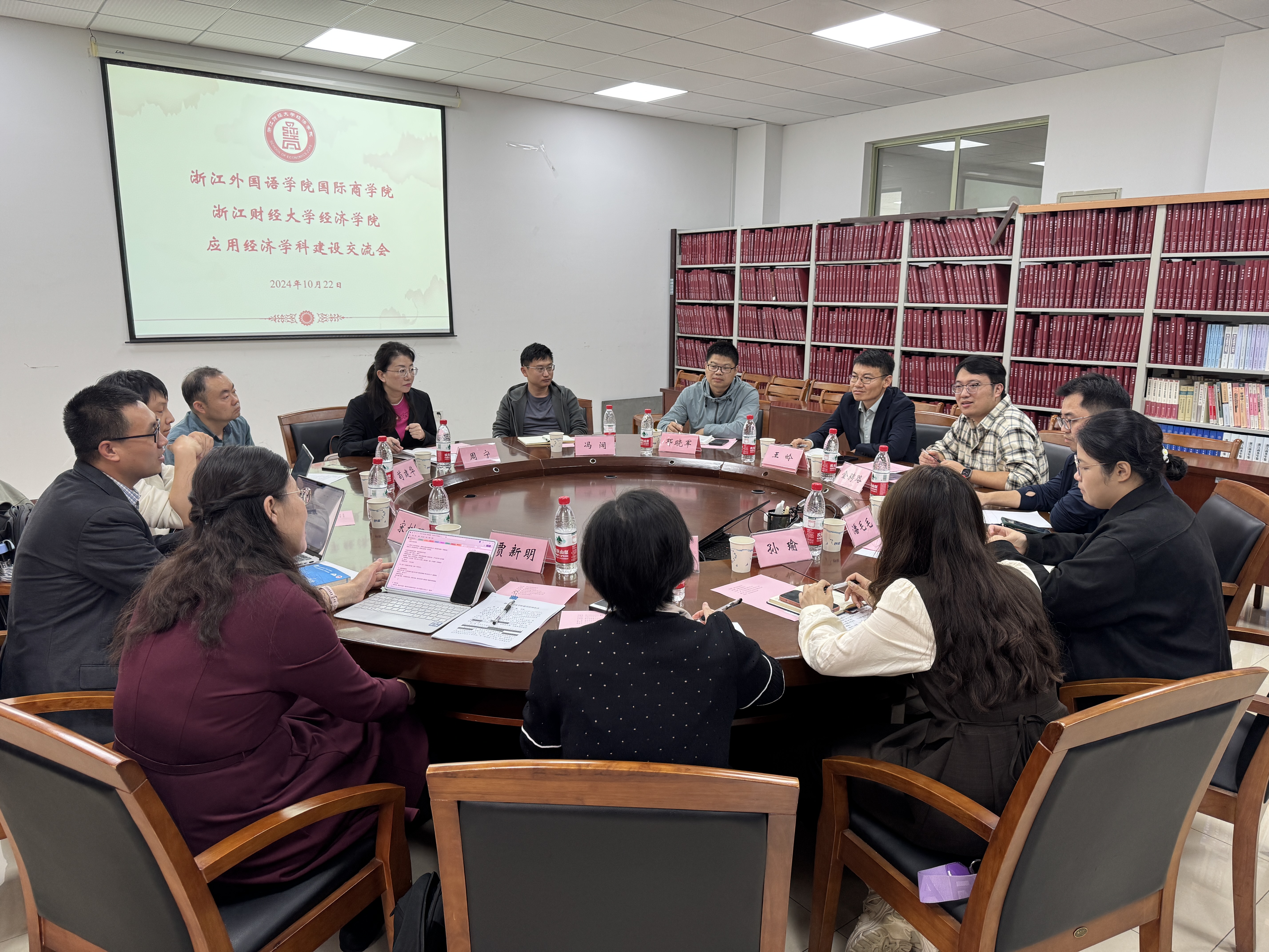 宋树理副院长介绍了浙江外国语学院商学院应用经济学学科建设情况,分享了学院在学科发展历程、组织架构、特色学科;贾新明副院长介绍了教学模式创新、国际交流合作等方面的探索与实践。
