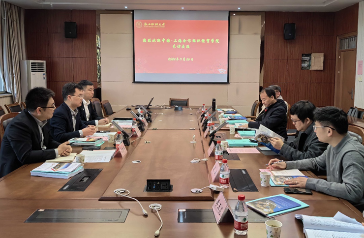 开展座谈交流,院长罗俊、党委书记徐奇伟、国际学院院长柴志贤、中亚研究院院长余慕鸿及国贸系骨干教师参加座谈交流。郑师院长介绍了上合组织经贸学院的建设情况和办学特色,并希望发挥哔咔