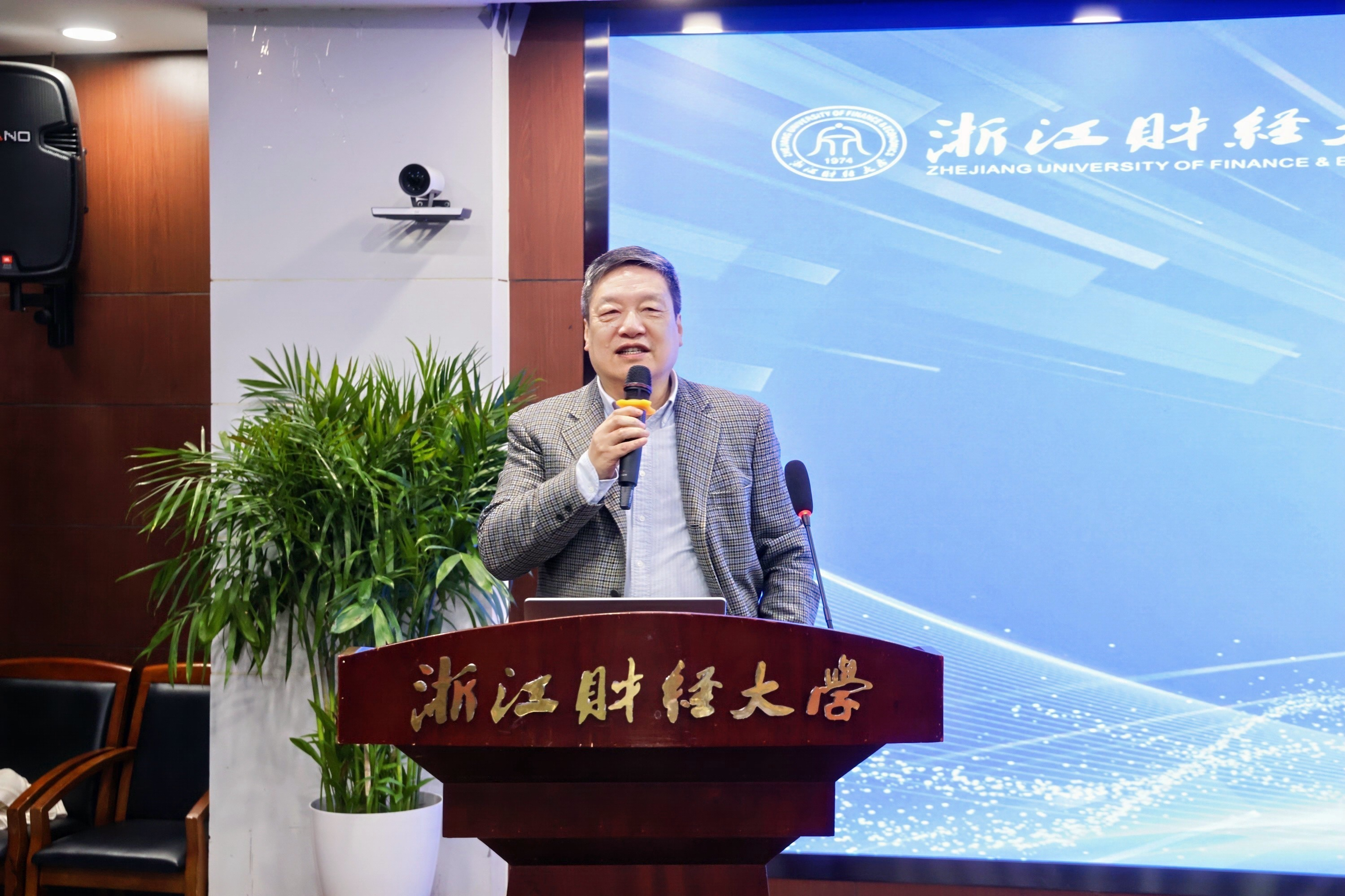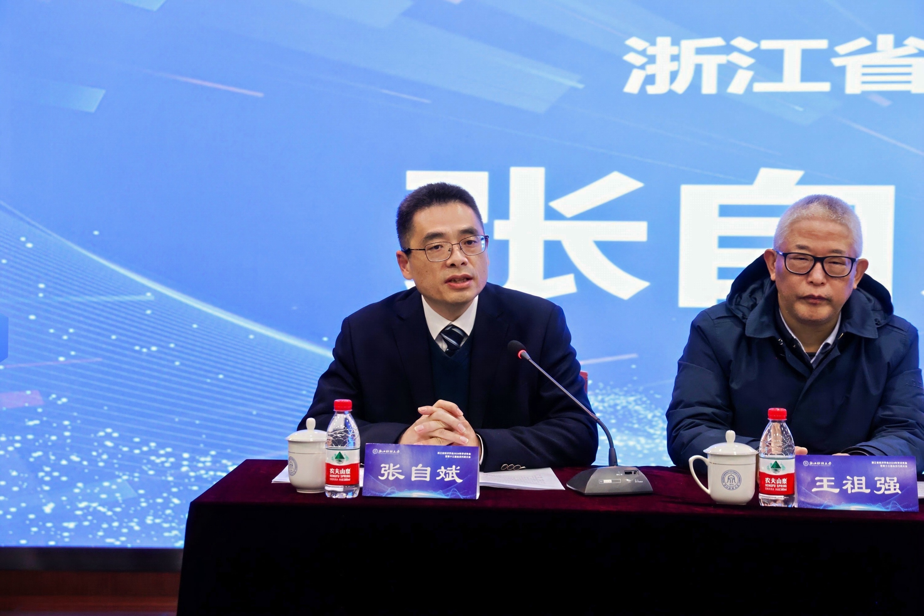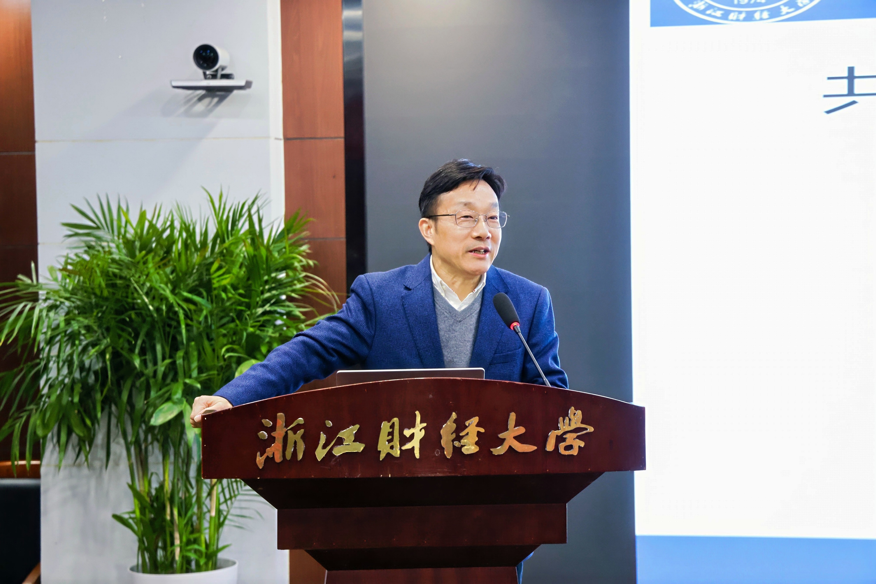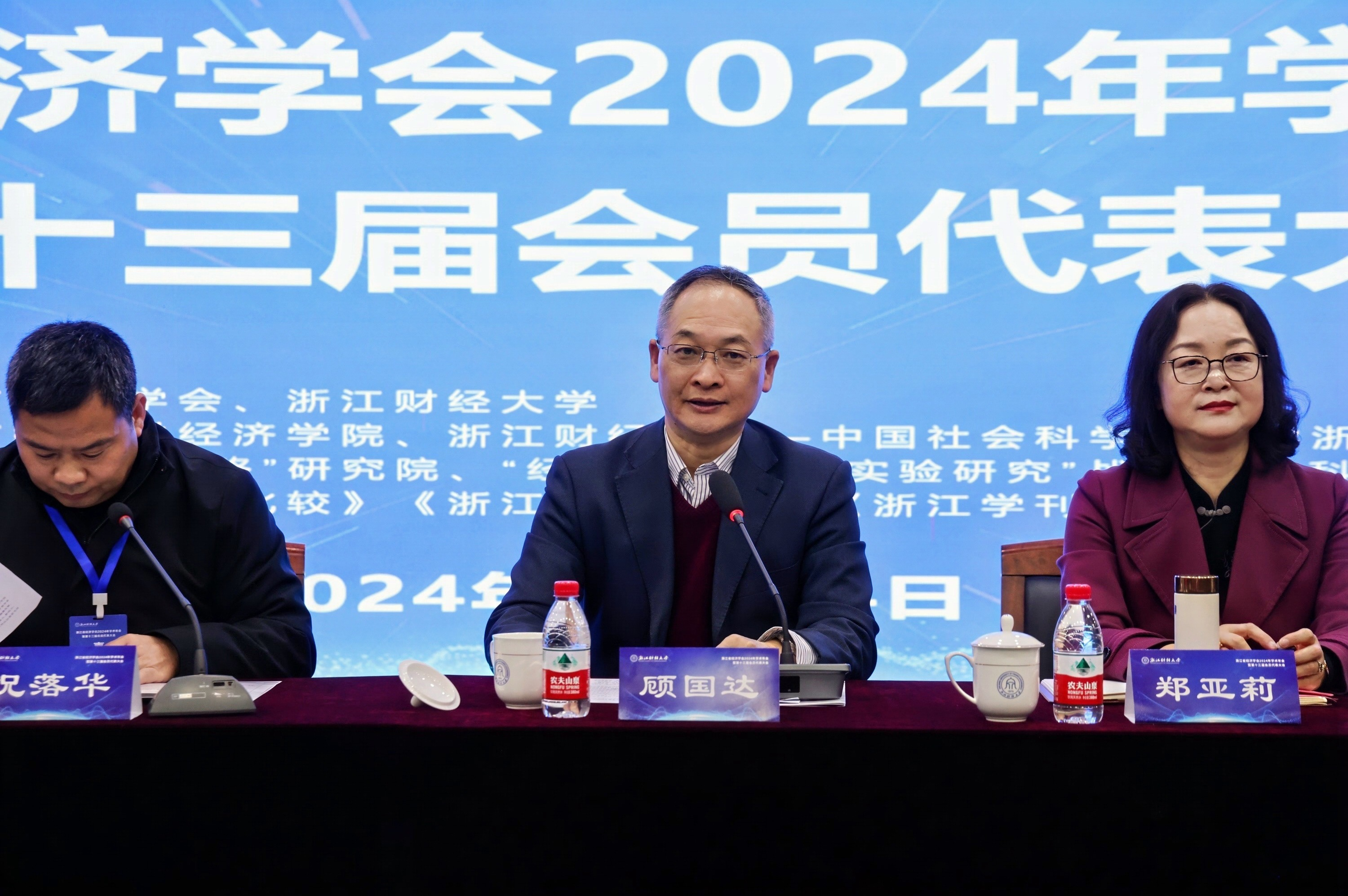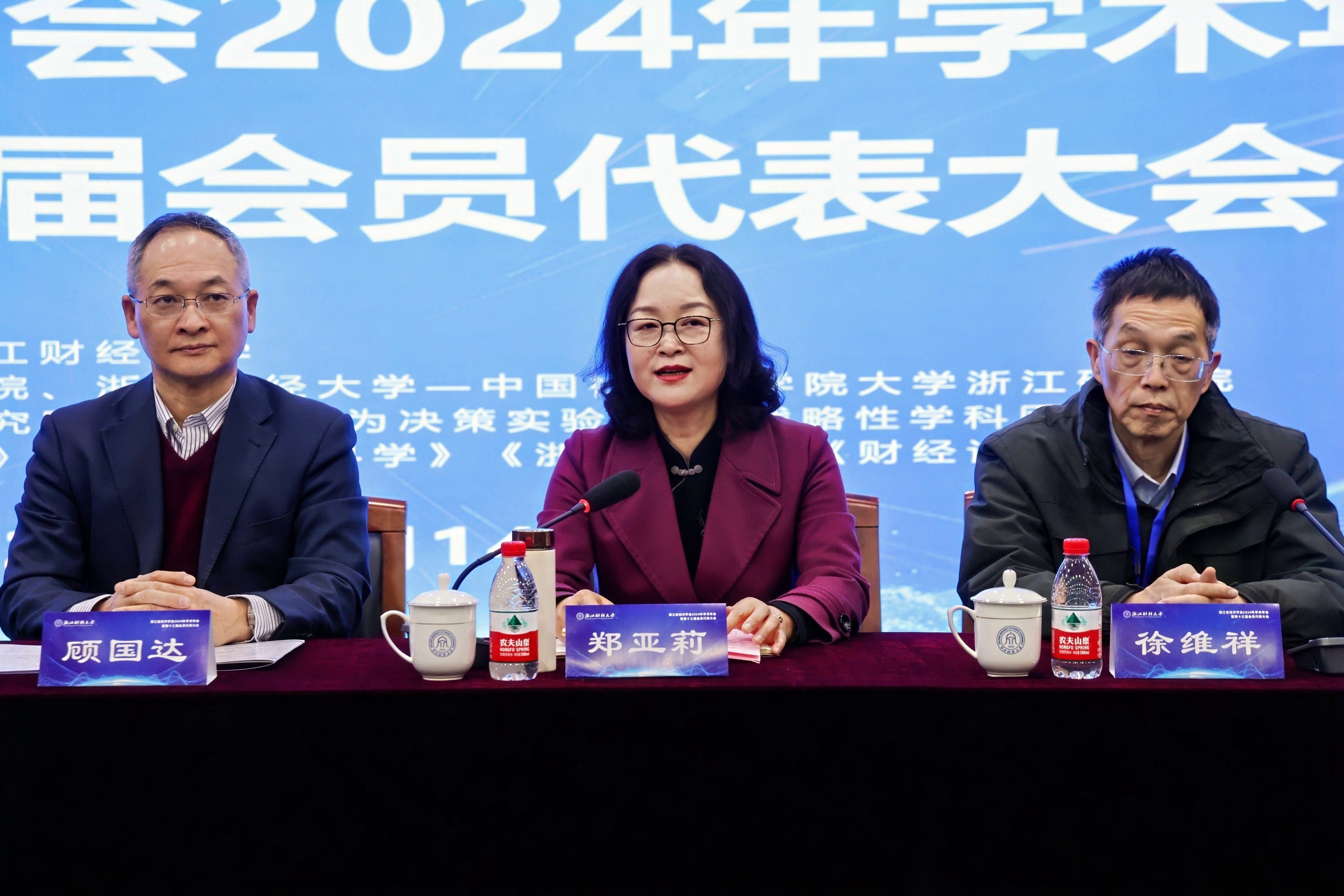副校长郑亚莉、浙江省社科联社科团体处副处⻓况落华、浙江省经济学会会长顾国达分别致辞,开幕式由哔咔