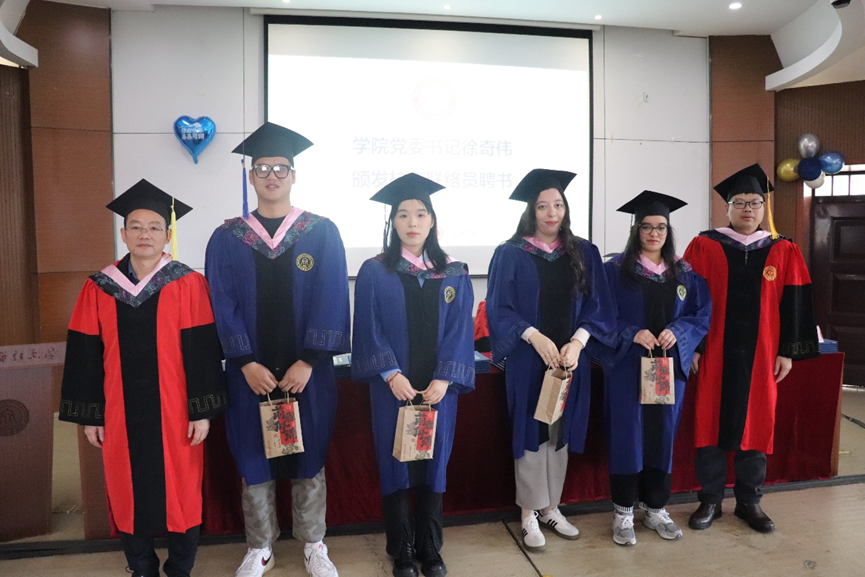 党委副书记徐丽玲、副院长王岭、副院长邓晓军、教师代表朱海城、王鑫鑫、丁松以及学院研究生辅导员、学院全体2025届国际商务毕业生们参加了盛典。典礼由院党委副书记徐丽玲主持。