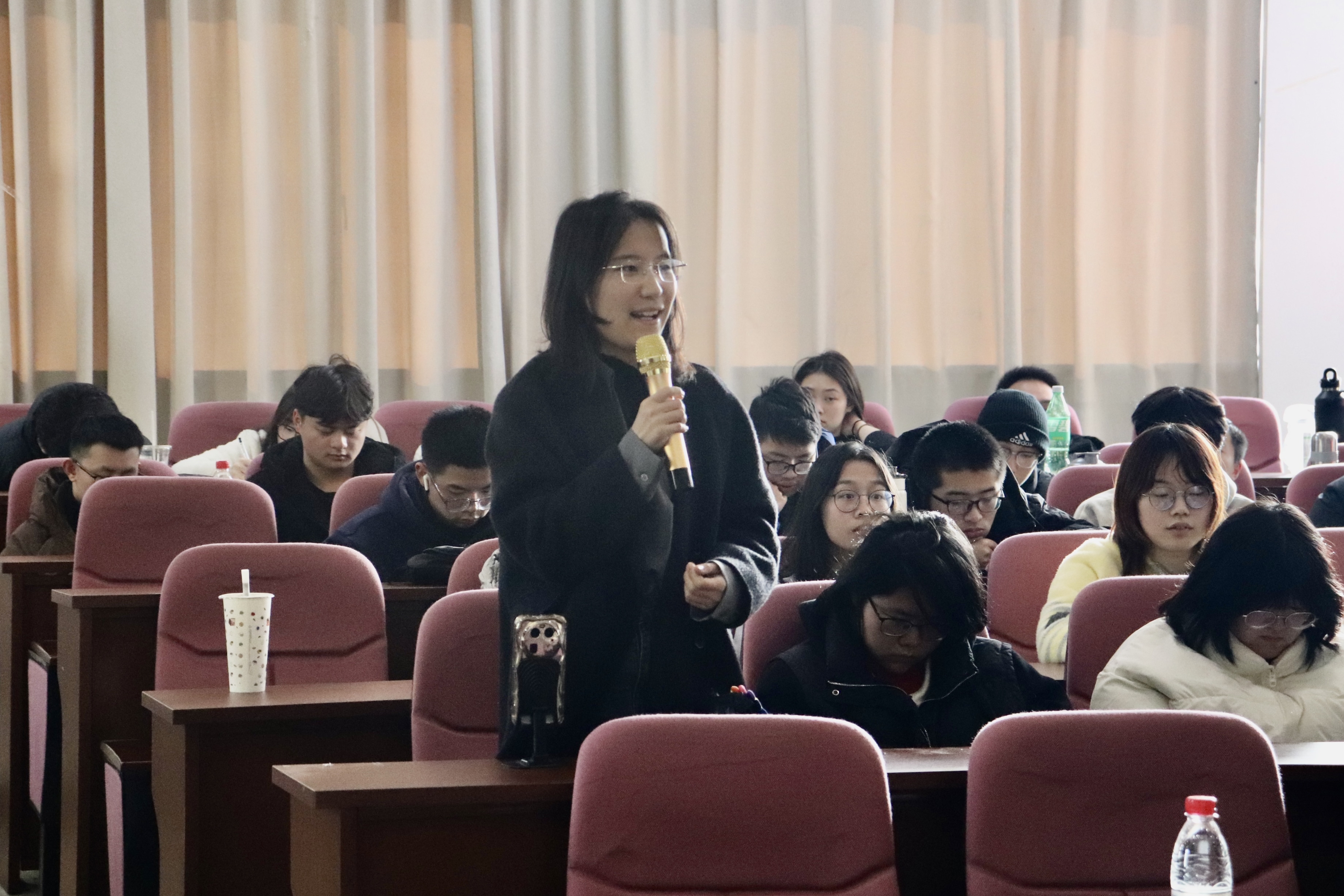 在交流互动环节,来自24数字贸易创新1班陈庆煜认为旅行和记录生活能够让自己感到幸福,并和大家分享了自己的幸福密码。23经济学创新班的刘小鸣认为能够从文学和历史相关书籍中探寻幸福的秘诀。哔咔
