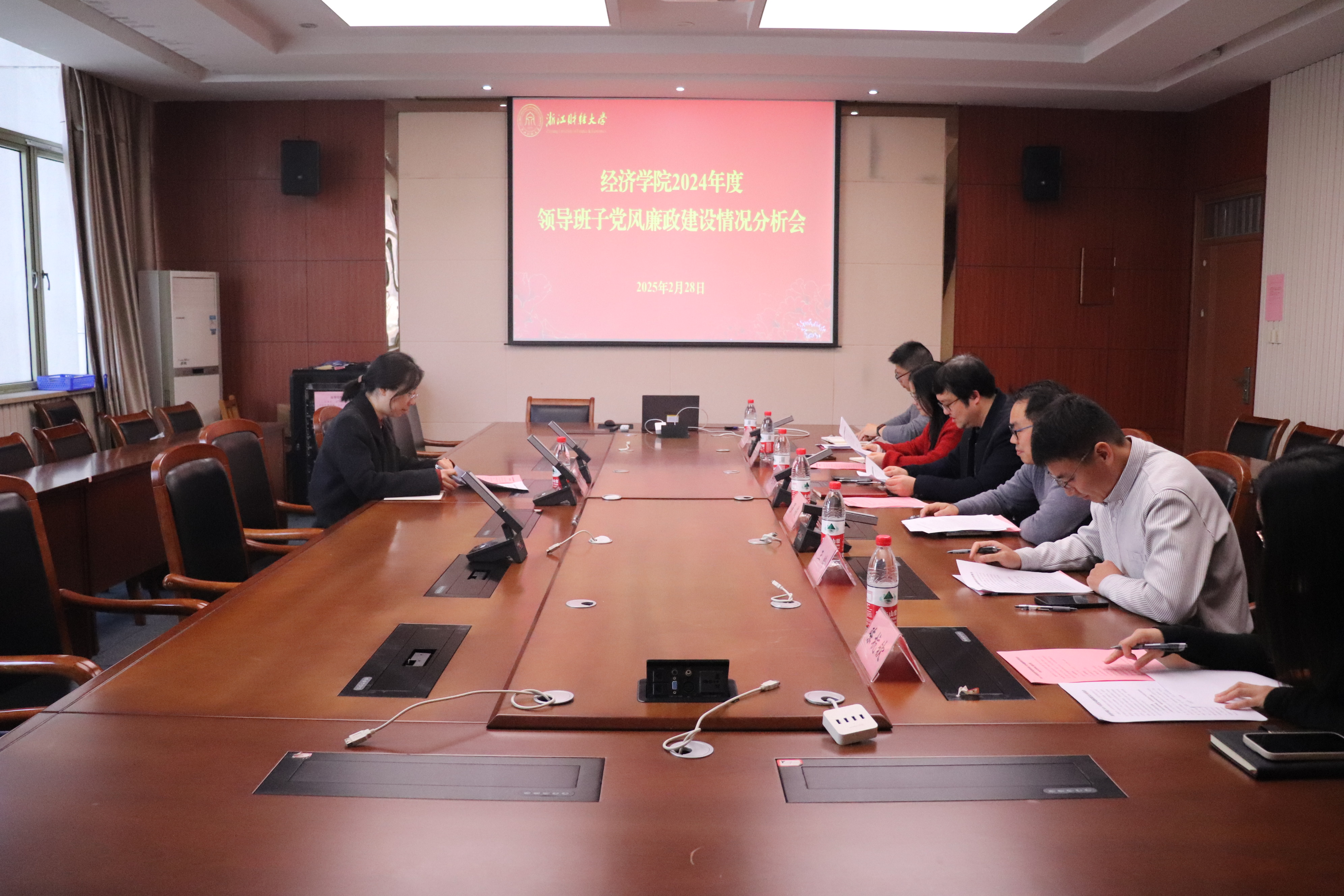 召开2024年度党风廉政建设分析会。校纪检监察室副主任陈秀琴到会指导,学院领导班子全体成员参会。会议由学院党委书记徐奇伟主持。
