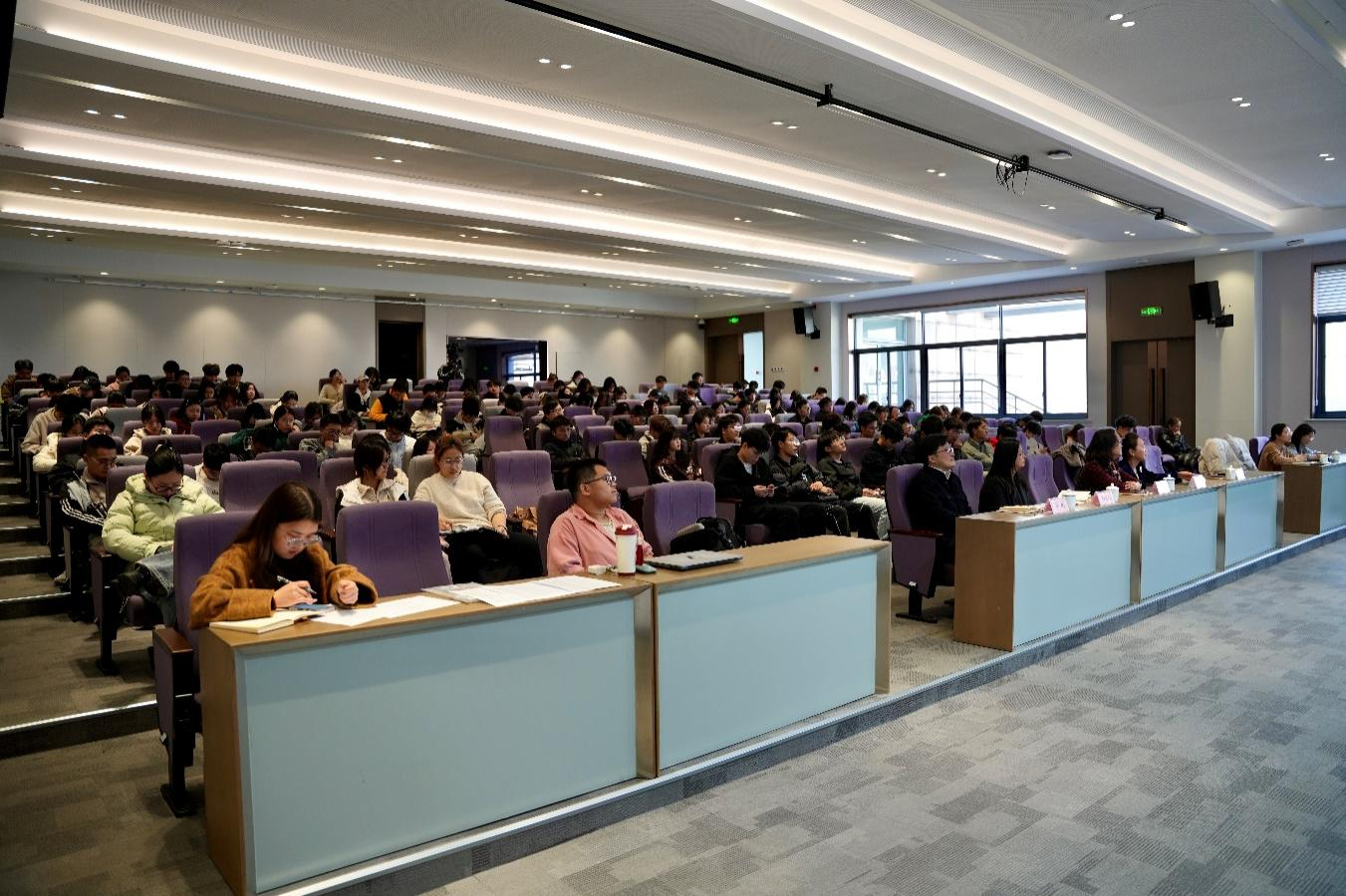 武长虹通过分享当前世界经济和全球贸易形势,分析跨境电商面临的挑战和机遇,杭州作为全国首个获批的跨境电商综合试验区发展电商产业的优势以及杭州跨境电子商务综合试验区的十年实践,介绍了杭州加快推进跨境电商高质量发展行动的背景、人才需求、具体举措和配套政策,同时鼓励在座的同学们做好职业生涯规划,积极参与跨境电商“三创赛”,毕业之后投身跨境电商产业这片热土,为现场师生带来了干货满满的报告。