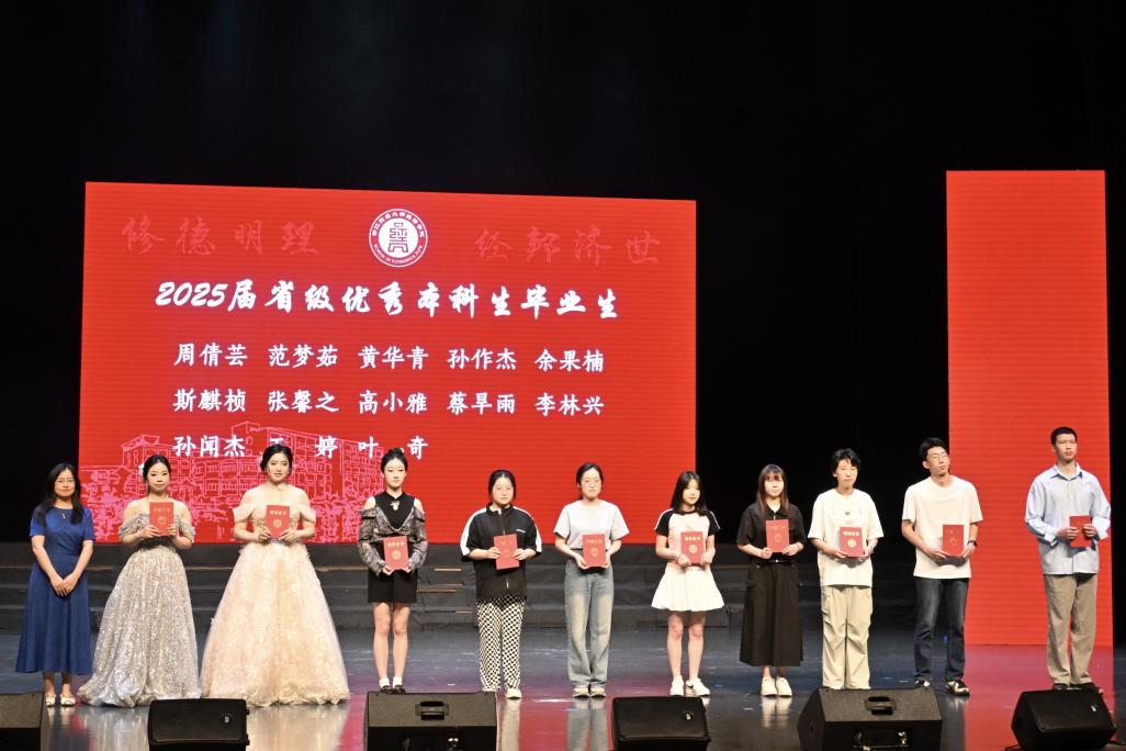 随后,学院领导为省级、校级优秀毕业生及研究生优秀毕业生颁发证书——徐丽玲副书记为省级优秀毕业生颁发证书;邓晓军副院长为校级优秀毕业生颁发证书;王岭副院长为研究生优秀毕业生颁奖。鲜红的证书映衬着学子们的笑颜,为多年奋斗画上璀璨注脚。