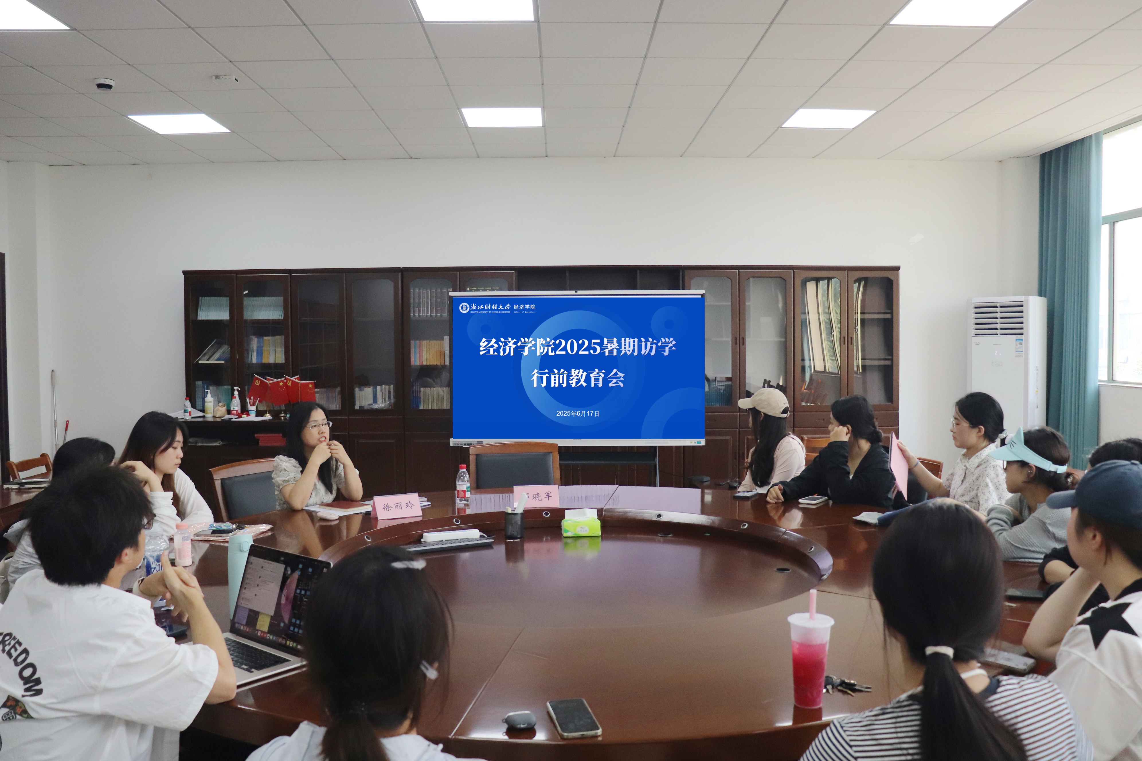 党委副书记徐丽玲围绕访学行前准备与行程管理等方面展开细致的行前培训。她首先向同学们详细介绍了行前需完成的各项准备工作,包括签证办理、行李整理、通讯联络、外币兑换等注意事项,确保同学们能够有条不紊地做好出发前的各项准备。在行程管理方面,徐丽玲老师强调了团队纪律的重要性,要求同学们严格遵守访学日程安排,听从带队老师指挥,做到统一行动、相互照应。此外,她还鼓励同学们在访学期间积极体验加拿大当地的文化与风土人情,展现浙财学子良好的精神风貌。