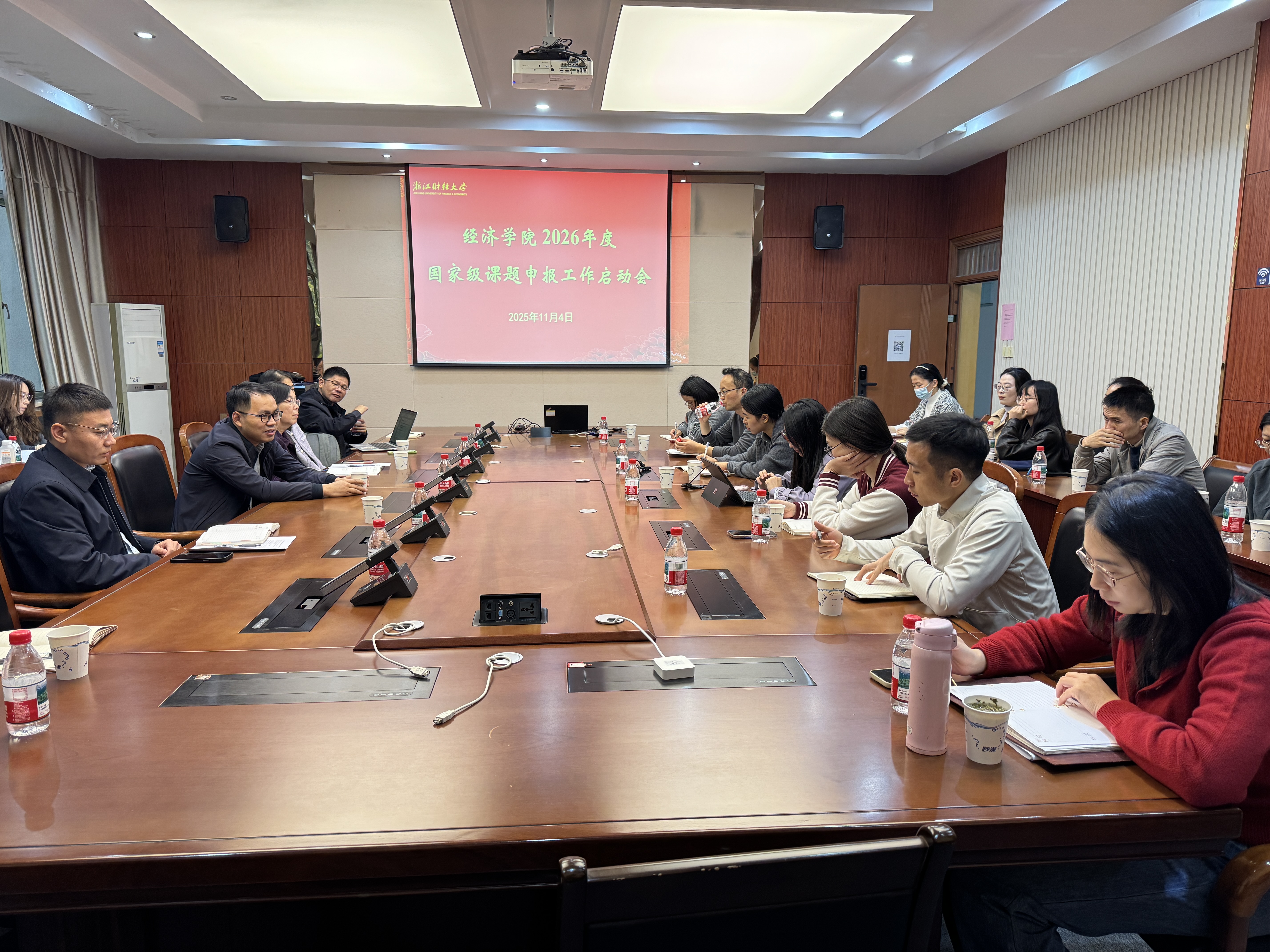 2026年度国家级课题申报工作启动会在学院210会议室举行。罗俊院长、王岭副院长、李晓钟教授、李玉花教授以及学院30余位教师参加会议。会议由王岭副院长主持,旨在提前谋划、科学部署,推动学院国家级课题申报工作提质增效,助力学院科研水平再上新台阶。