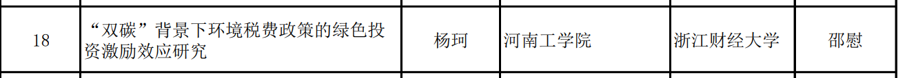 近日,全国哲学社会科学工作办公室正式公布2025年国家社会科学基金后期资助暨优秀博士学位论文出版、优秀学术著作再版项目立项项目,我院2023届产业经济学专业博士毕业生杨珂的博士学位论文《“双碳”背景下环境税费政策的绿色投资激励效应研究》获批立项,标志着我校在国家社科基金优秀博士学位论文出版项目上实现历史性突破。