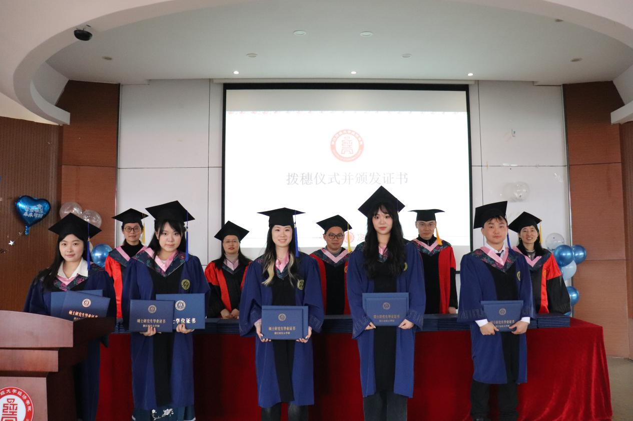 随着副院长王岭宣读授予学位名单,进行了隆重的硕士学位颁授仪式。奋斗了两年半的国际商务学子,今朝如愿以偿完成学业,他们即将从浙财起航,奔向新的人生旅程。