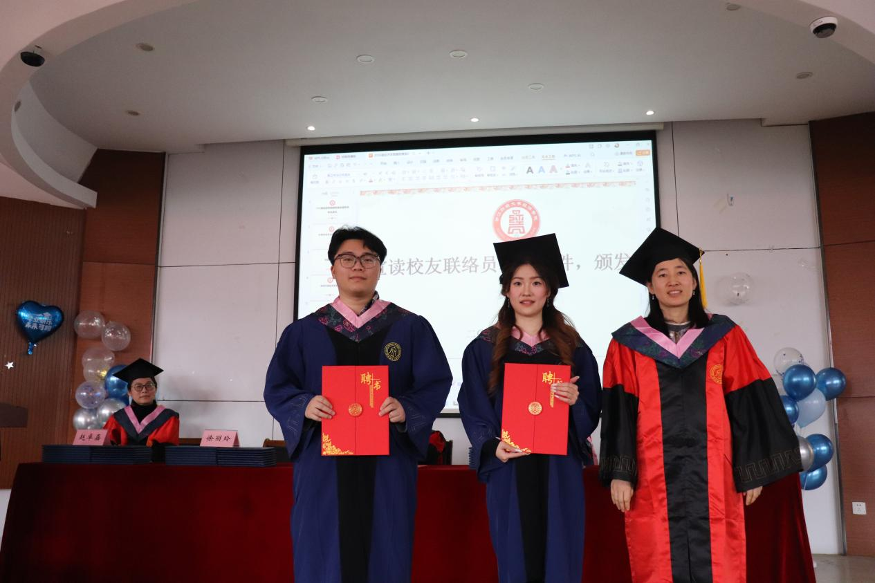 随后,学术副院长李玉花宣读了校友联络员的聘任文件,鼓励校友联络员做好学校和同学之间的桥梁,并颁发了校友联络员聘书。