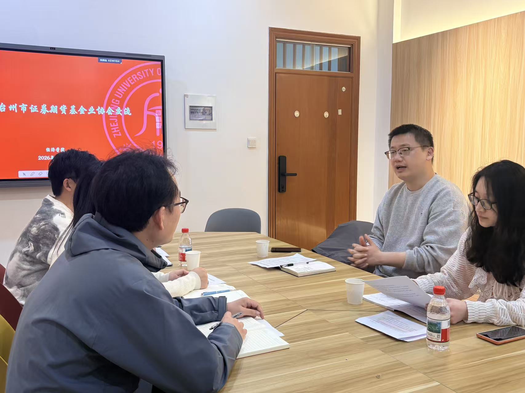 邀请台州市证券期货基金协会轮值会长张天逸一行人于学院进行交流。