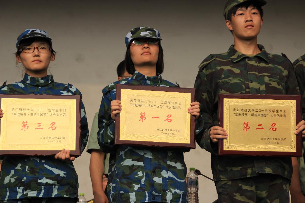 最后,校党委书记韩翼祥教授宣布了评奖结果,经贸学子们的出色表现为六营赢得了“队列先进集体”的称号。大会还就“军歌嘹亮·唱响中国梦”大合唱比赛进行了颁奖,六营在该比赛中获得了第一名的好成绩。