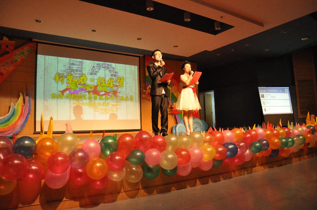 10月26日18点30分,由经济与国际贸易学院团委学生会主办的13级迎新晚会在学术一号报告厅隆重举行。经贸学院党总支副书记叶秀、学生办公室主任崔泰铭、团委书记汪风易及辅导员赵聪、谭立娟出席了本次晚会。