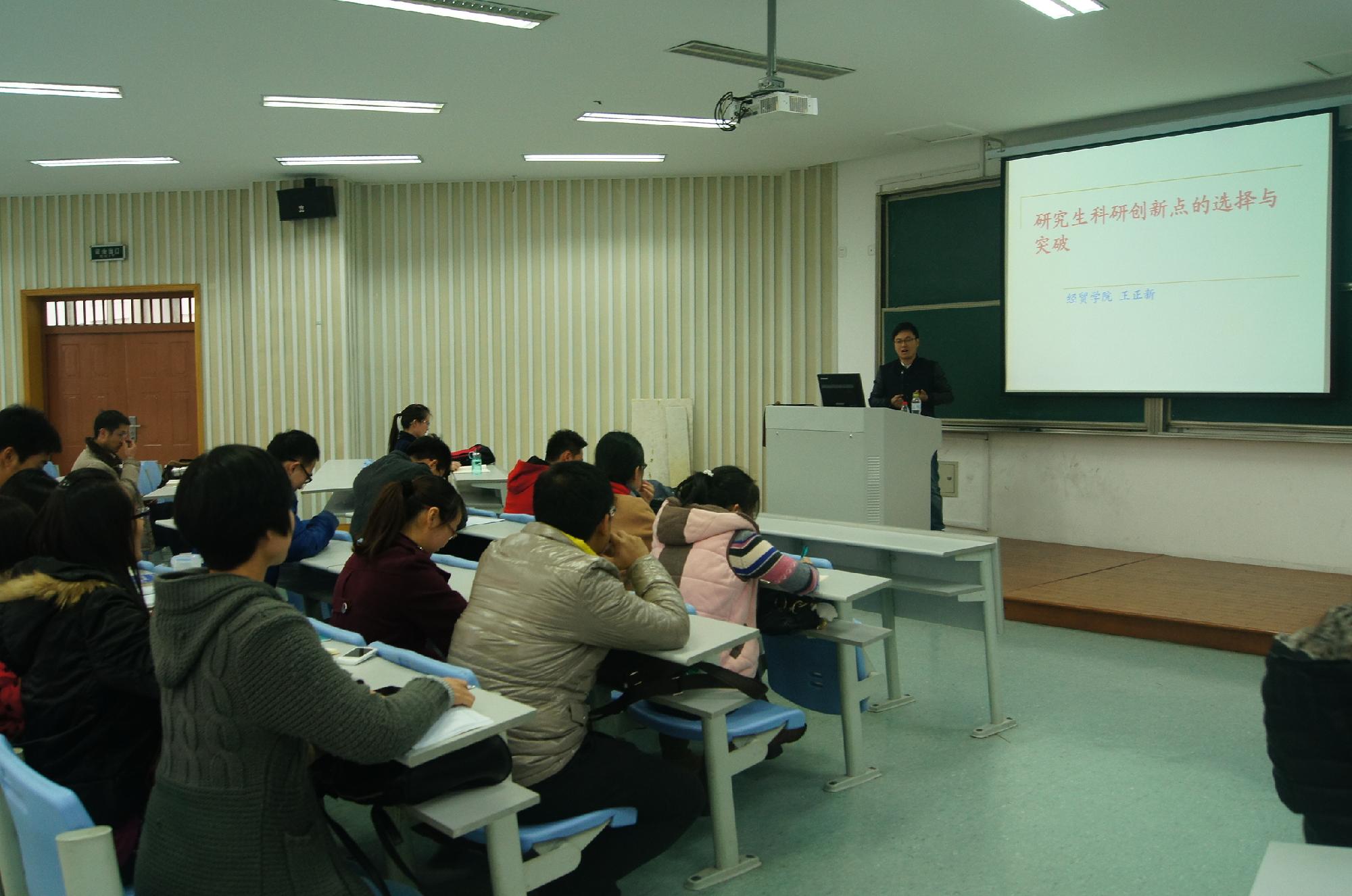经济与国际贸易学院学科建设年“研究生如何做学术” 系列讲座活动第四讲于2013年12月6日在6号楼(经贸学院楼)111教室举行。王正新博士受邀就“如何利用计量经济学开展学术研究”为全院同学做了一场精彩而详尽的讲解。