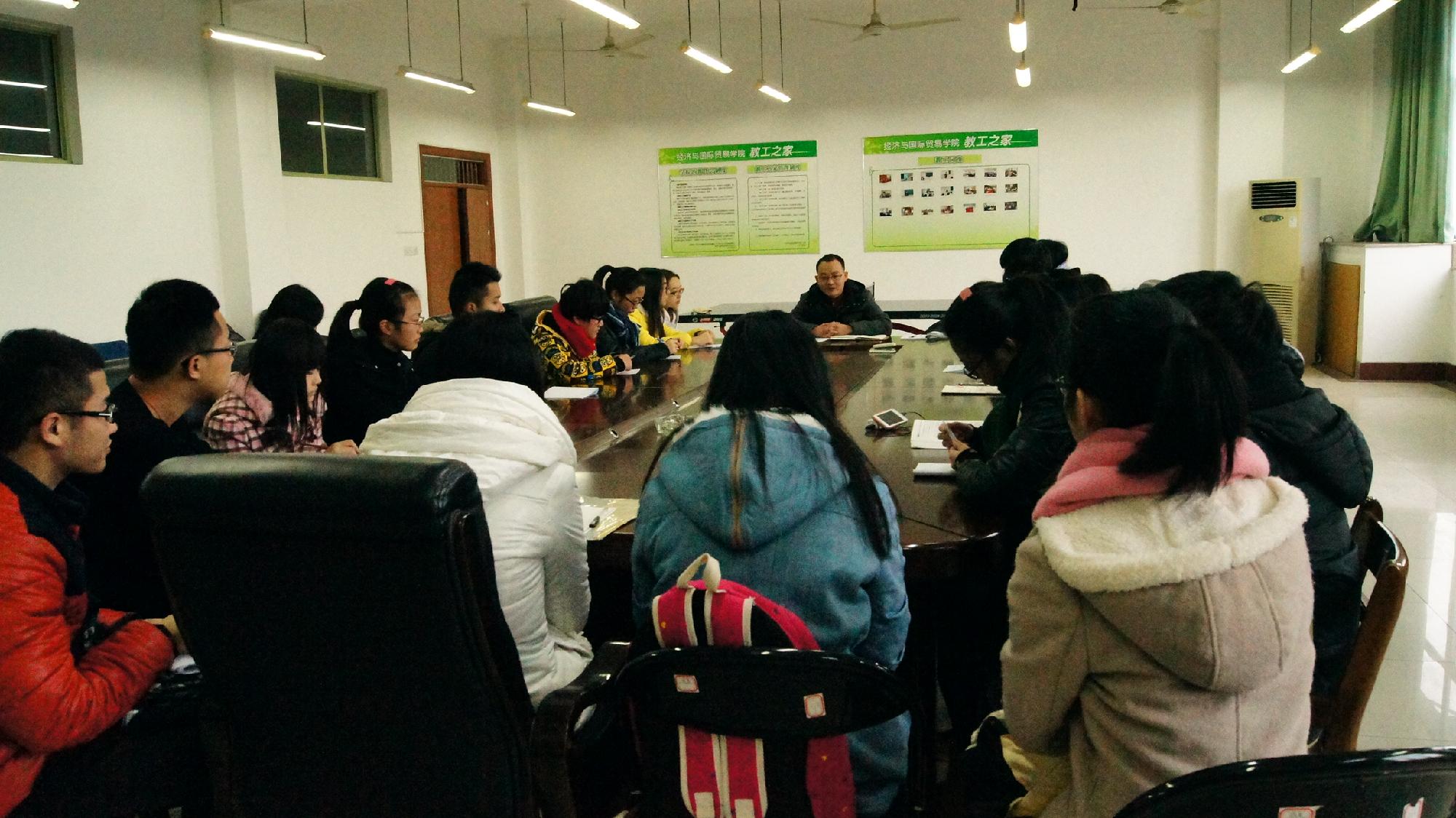 柴老师主要就四方面强调了学习委员的作用:一、学习委员不光要安排好自己的学习,做学习上的表率,还要带领同学一起学习,促进班级与学院良好学风的形成;二、在班级学习管理过程中扮演好上情下达和下情上达的双重纽带角色,前瞻性、扎实地履行制度的解说员与信息的收集员职责;三、在课堂内外学习中要扮演好组织者的角色,在协助动员学科竞赛、提供选课咨询、协助实践教学管理等方面做好服务工作;四、进一步坚持并完善学习委员坐班制,并通过工作考勤进一步规范化。