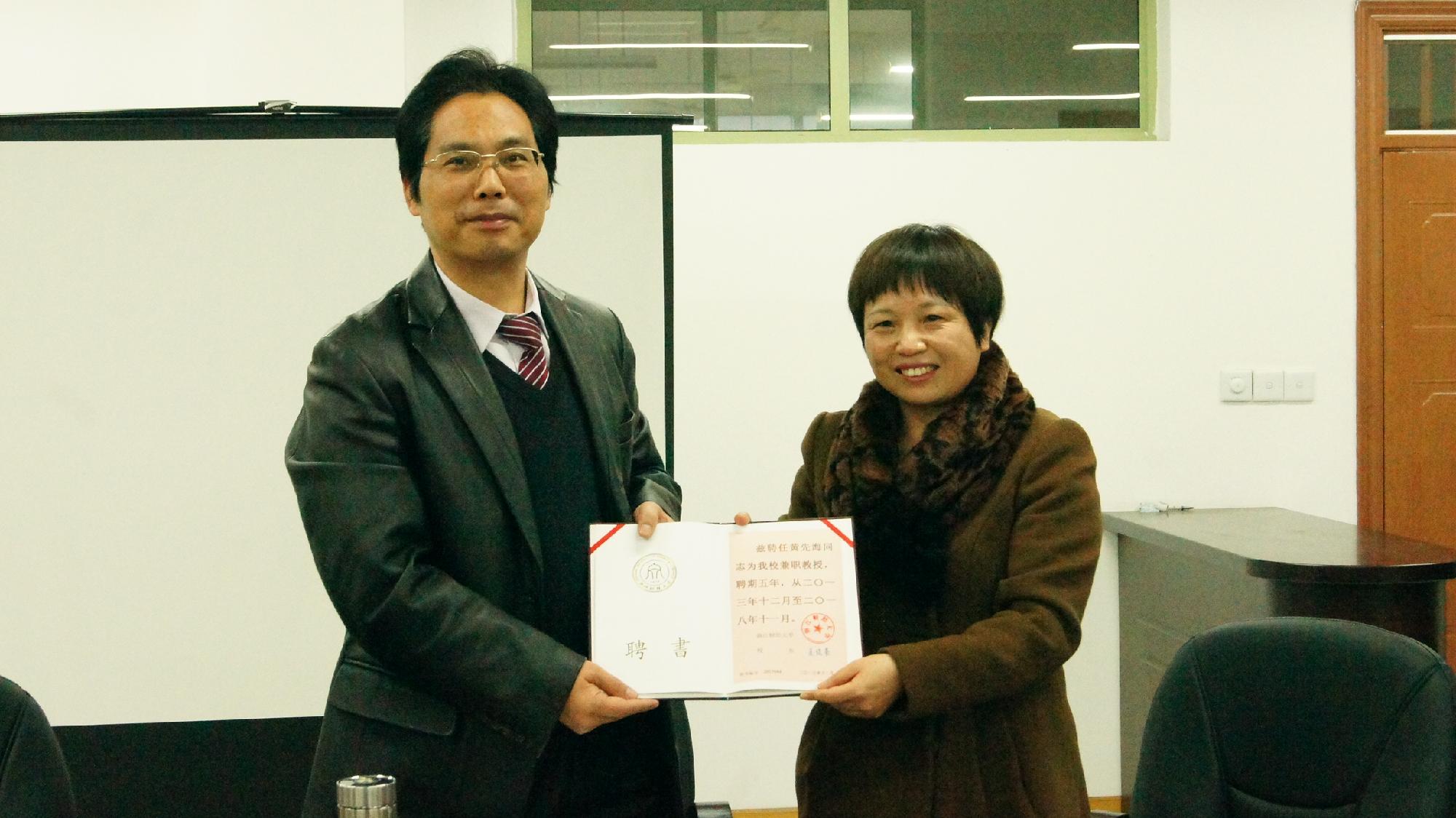 12月17日下午,浙江大学哔咔 常务副院长、浙江省国际贸易学会会长黄先海教授受聘为我校兼职教授,并在经贸学院楼304室对哔咔 的学科发展进行指导,胡亦琴院长为黄先海教授颁发了聘任证书。