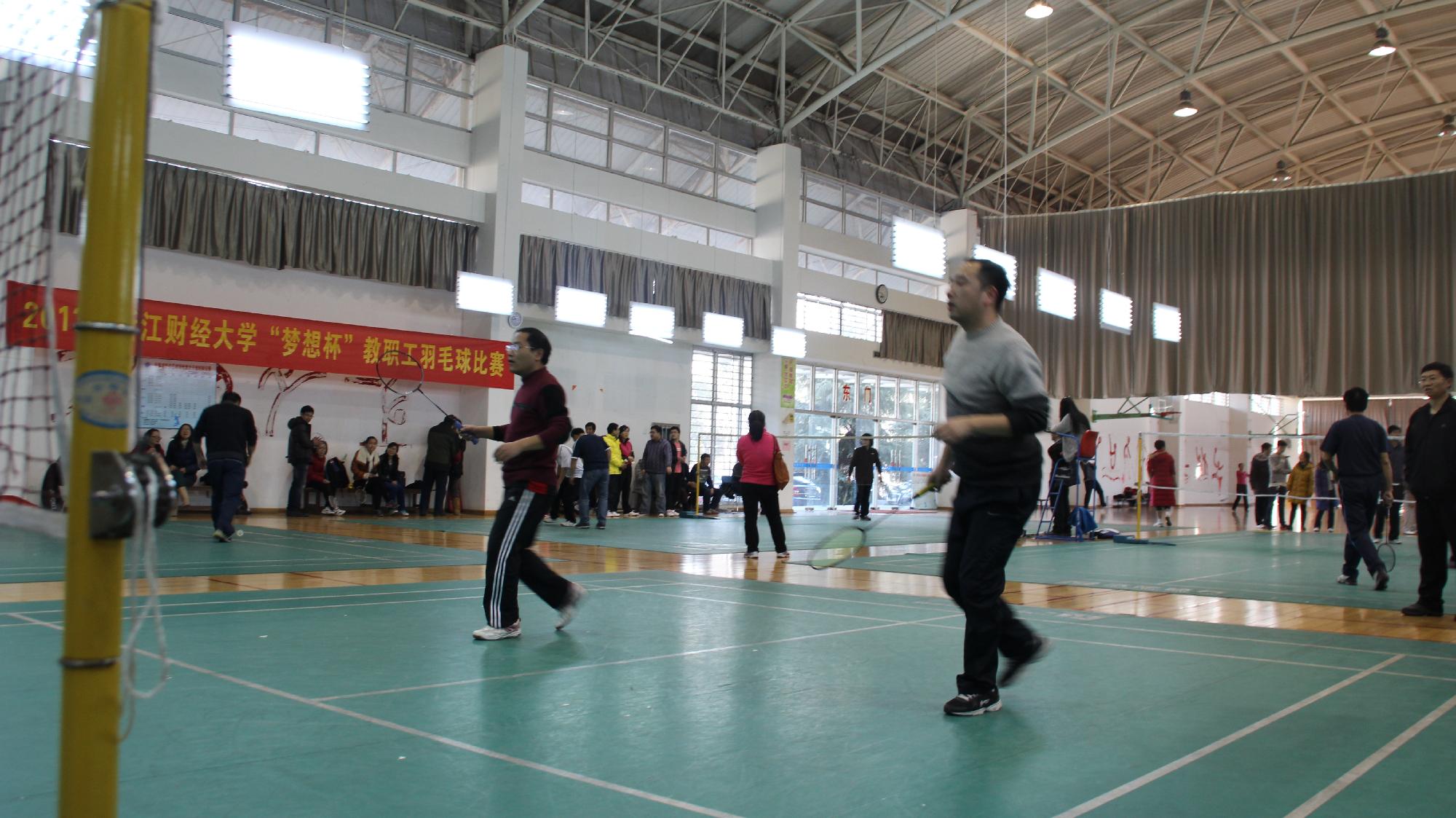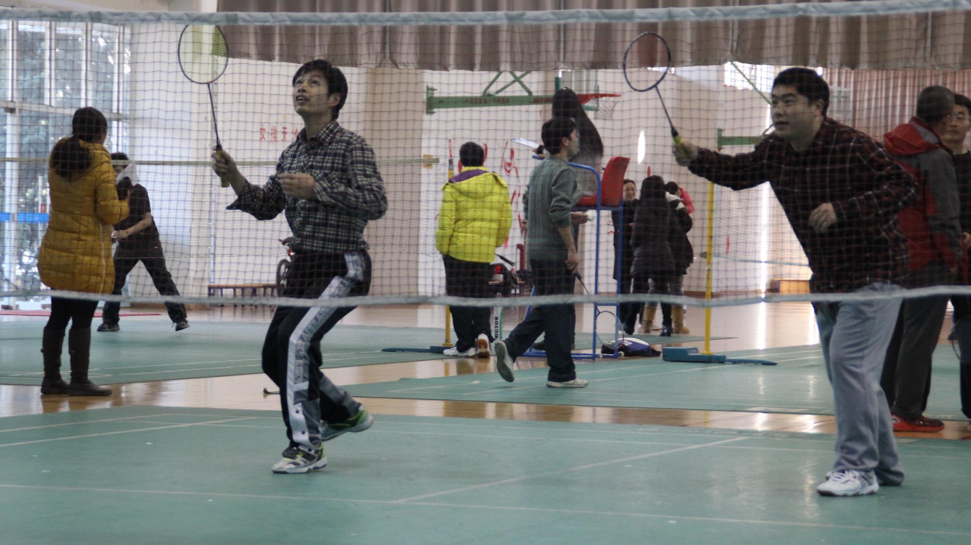 1月2日下午,我校2013年“梦想杯”教职工羽毛球比赛在东馆举行。本次比赛设有男单、女单、男双(2对)、混双五个项目,采用三局两胜制,哔咔