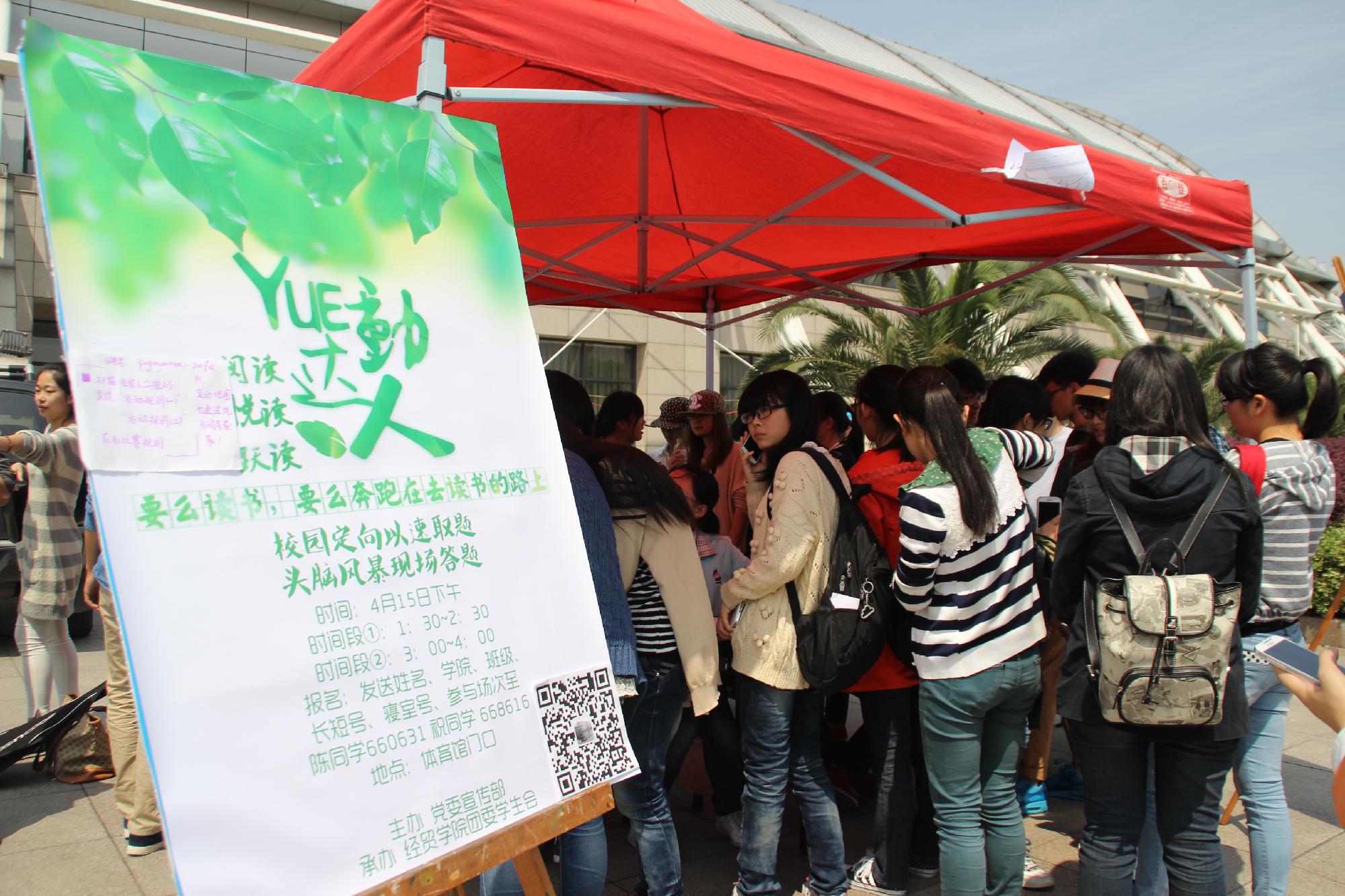 为了丰富同学们的课余生活,鼓励大家多读好书,广结良友,“YUE动达人”活动于4月15日下午在西体育馆门口火热举行。本次活动由哔咔