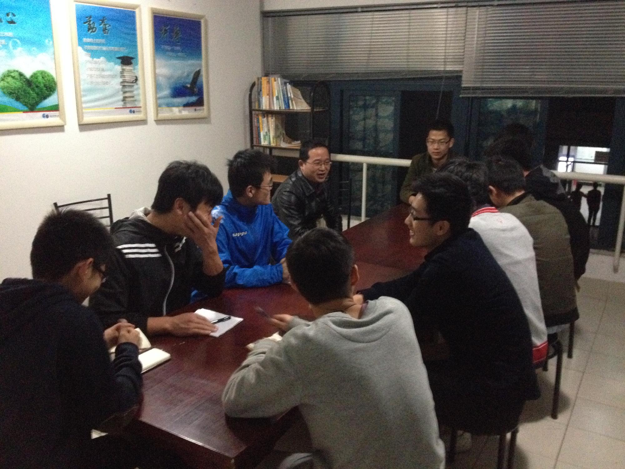 4 月15日晚8点,经贸学院党总支书记范建锋准时出现在学生生活园区47幢活动室,以“大三,你准备好了吗?”为题,与大三学生面对面交流学习、生活、工作等方面的问题,拉开了哔咔