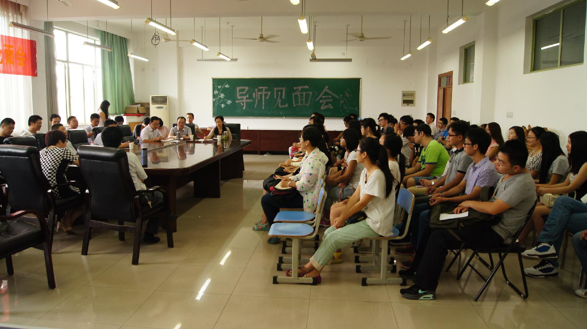 2014级研究生导师见面会在经贸学院楼313会议室隆重举行。本次见面会由经贸学院范建锋书记主持,王俊豪校长,卢新波副校长,胡亦琴院长出席并讲话,经贸学院全体研究生导师和57名新生参加了见面会。