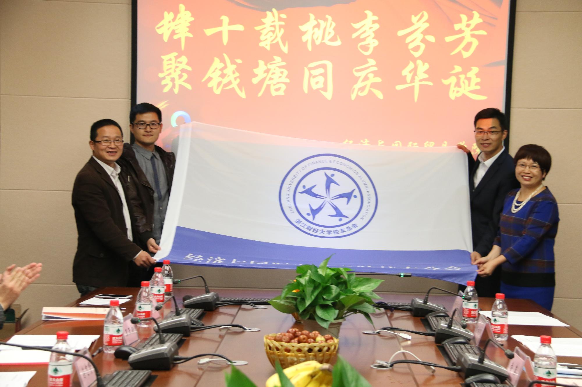 学院领导还为为经贸学院校友分会进行了授旗仪式。