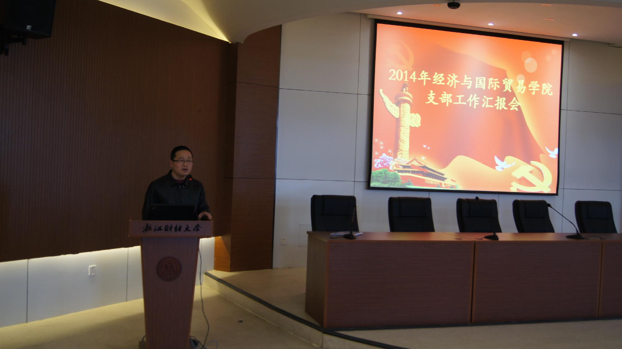 在学院楼219室召开了2014年度党支部述职考评会。会议由党总支副书记叶秀主持,党总支书记范建锋、各学生支部书记和部分党员群众代表参加了会议。