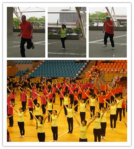 教师身着整齐的队服,斗志昂扬,以整齐一致的动作,舒展大方,刚健有力,配合着音乐节拍,忽而齐步如裁,忽而声遏行云,获得了赛场外的掌声、喝彩声和评委老师的好评,最终获得了优秀奖。
