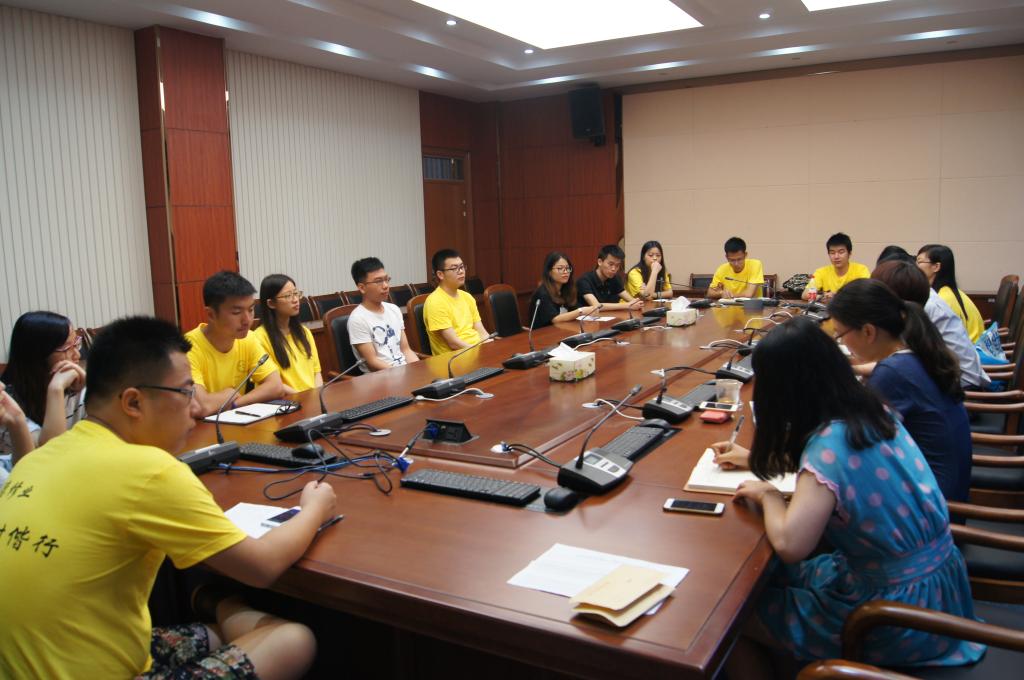 2015届毕业生座谈会在学院楼210会议室举行。院长胡亦琴,党总支书记范建锋,副院长柴志贤,党总支副书记叶秀以及学办主任崔泰铭和教学办高晓菁老师等与哔咔
